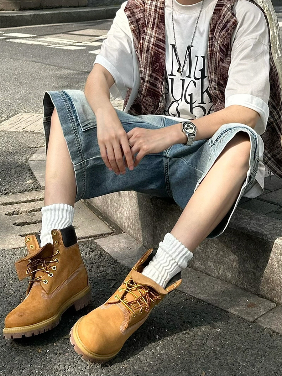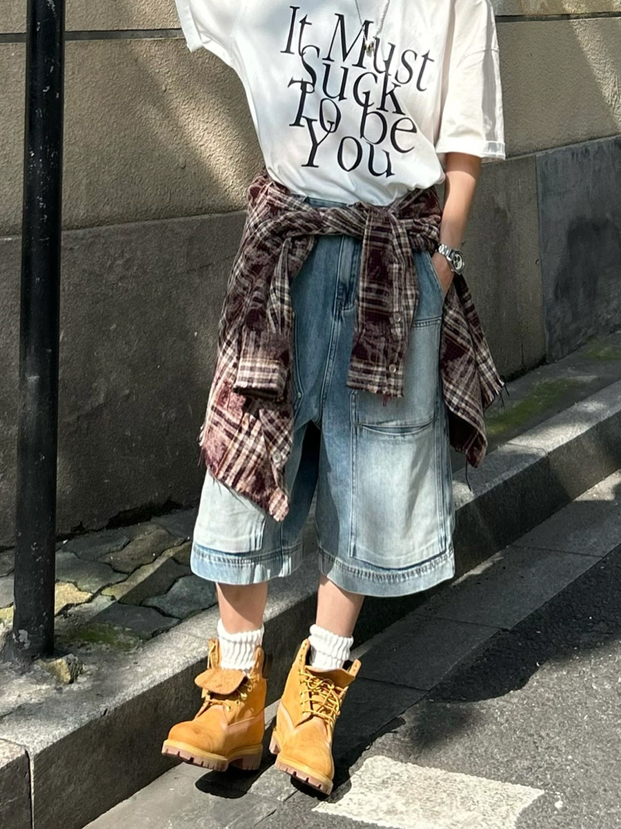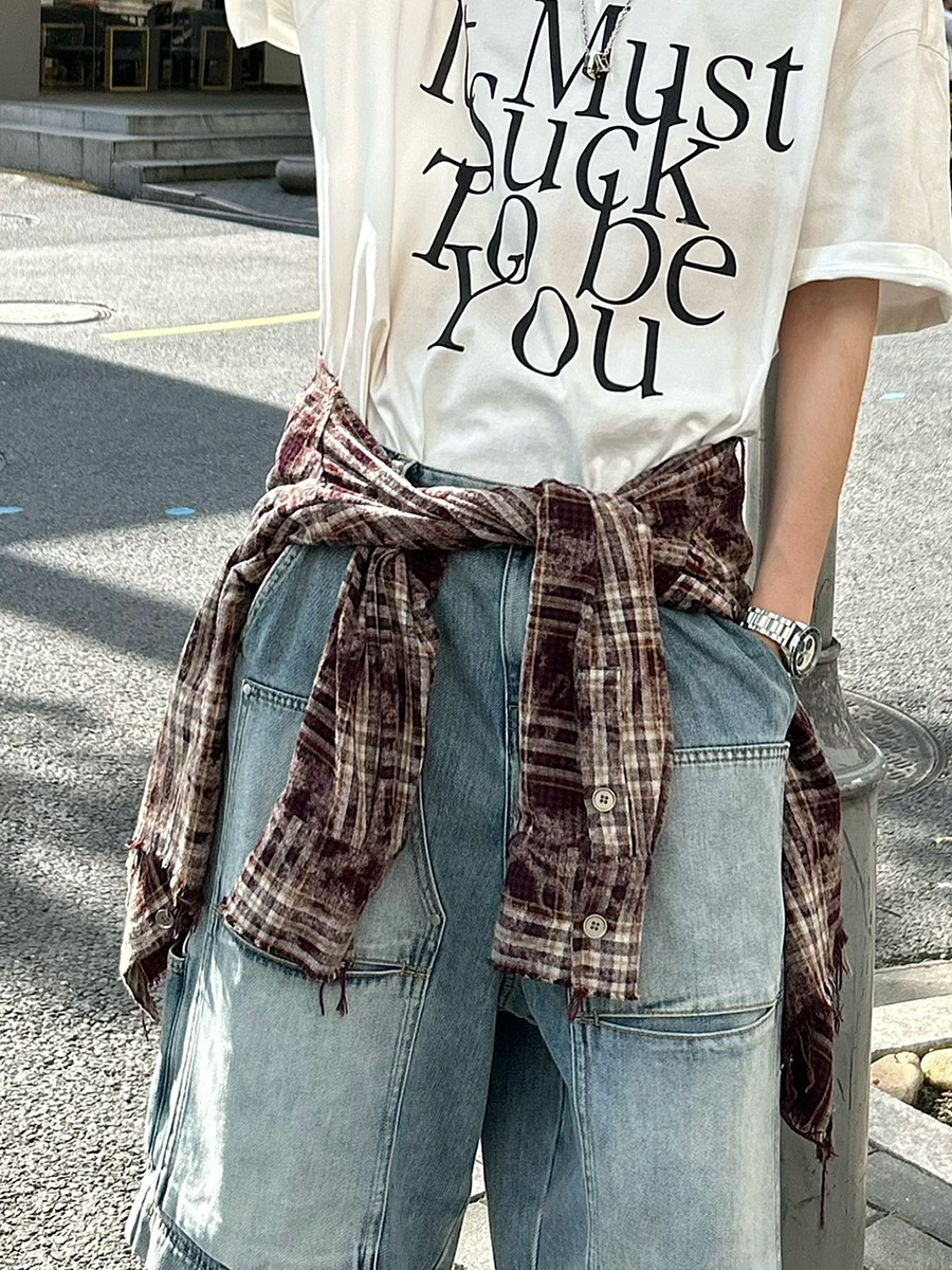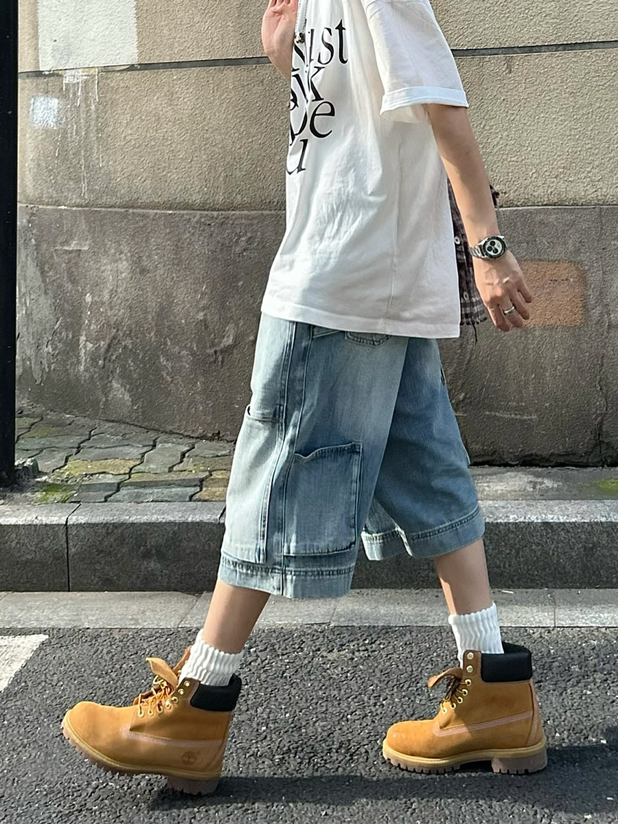 아메리칸 스타일 하이 스트리트 멀티 포켓 툴링 데님 반바지 남자 레트로 니치 올 매치 루즈 스트레이트 미드 팬츠 크롭 트렌디 팬츠스토어 가기