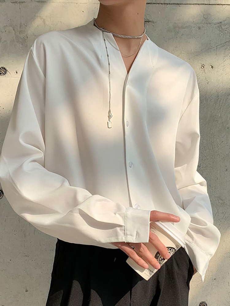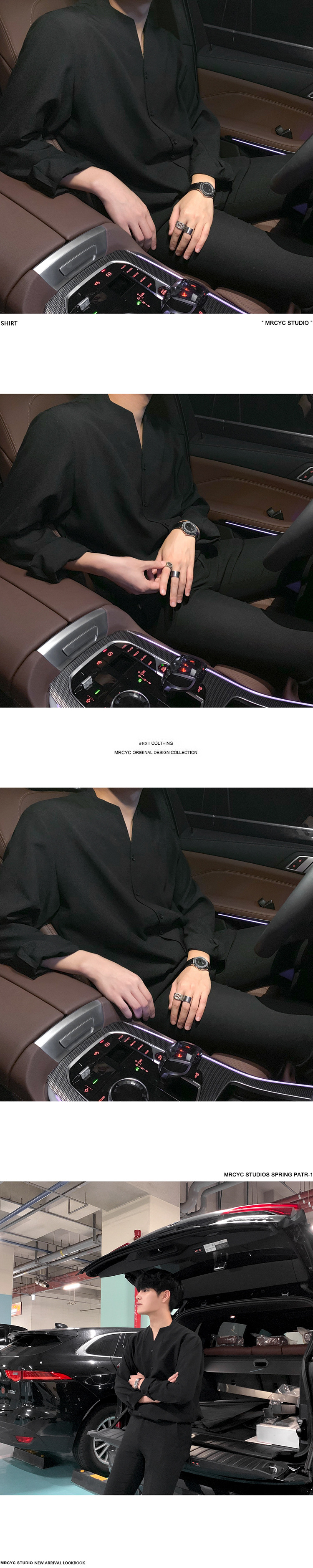 디자인 센스 2023 가을 새 스타일 수직 칼라 독특한 슬림 핏 셔츠 남자의 한국 스타일 유행 잘 생긴 긴팔 셔츠스토어 가기