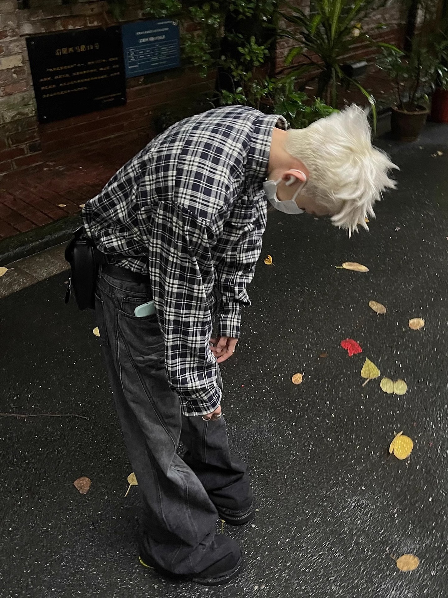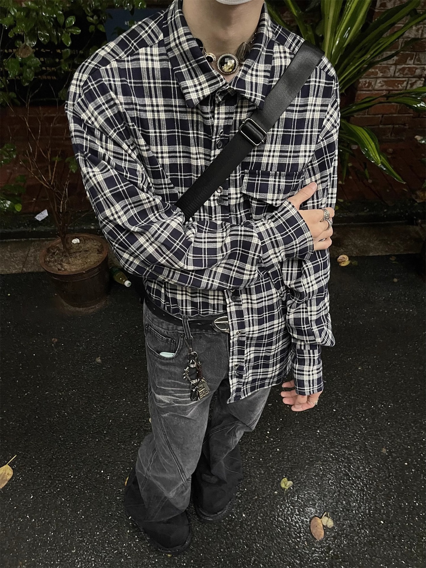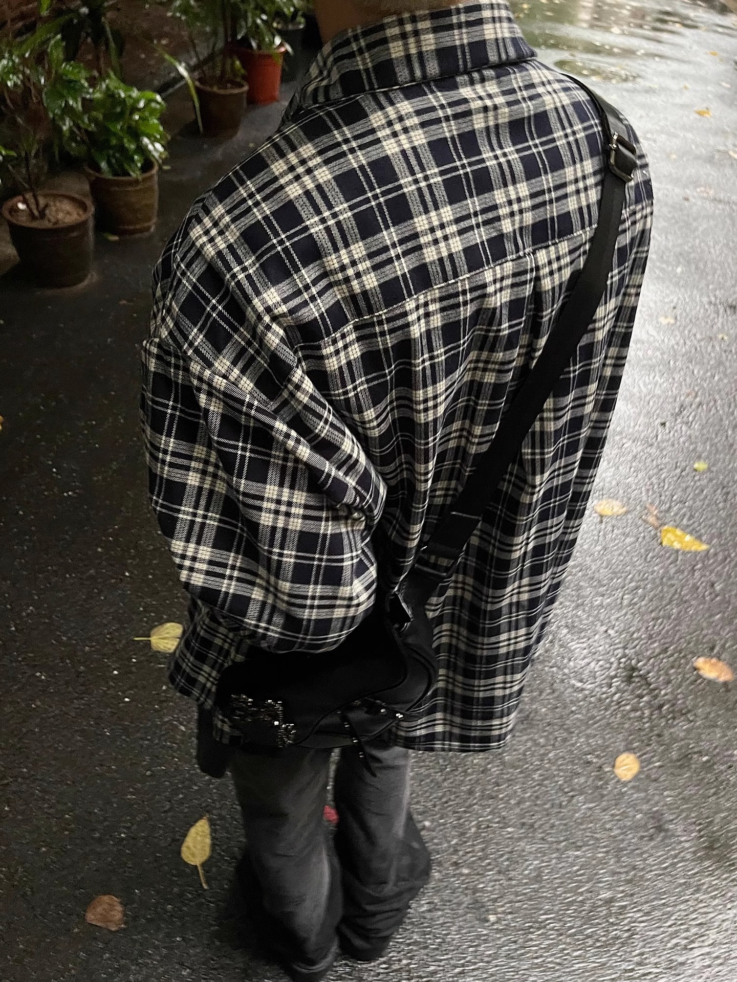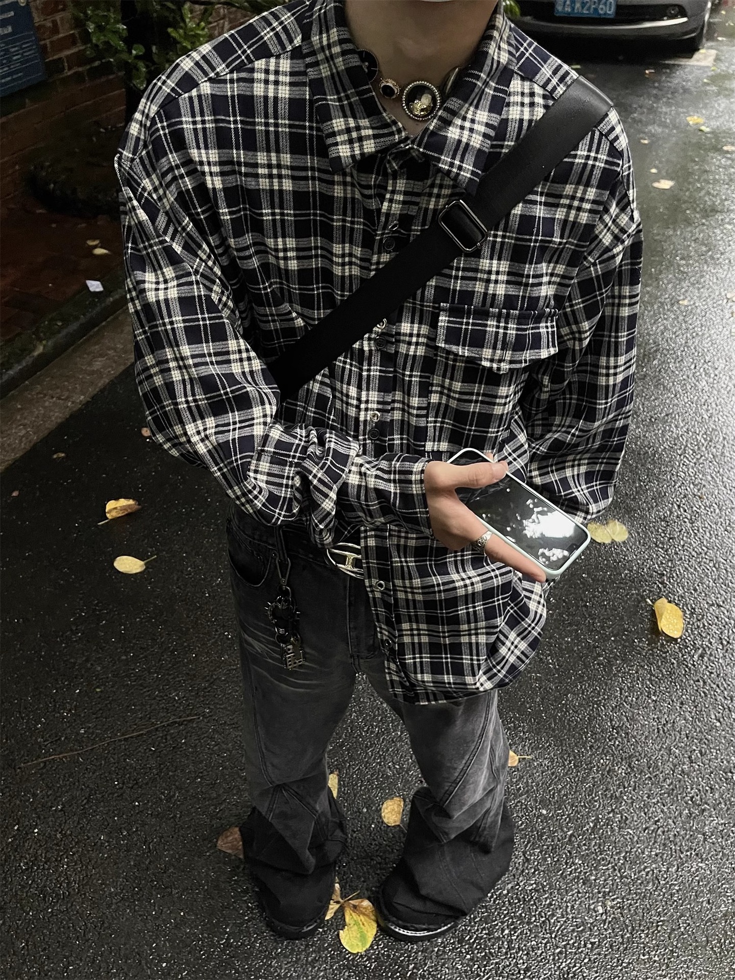 미국 스타일 느슨한 게으른 스타일 흑백 격자 무늬 셔츠 남자의 봄과 가을 새로운 스타일 체크 무늬 셔츠 캐주얼 코트 Ins 트렌디스토어 가기