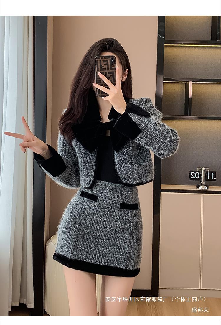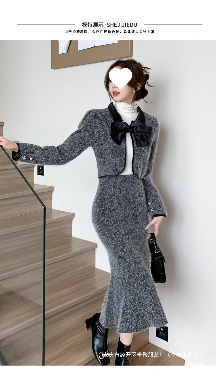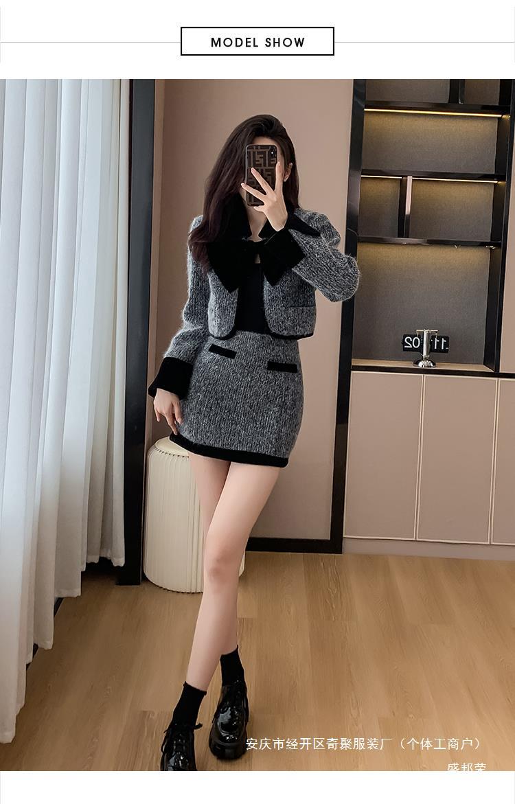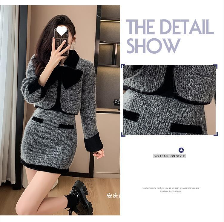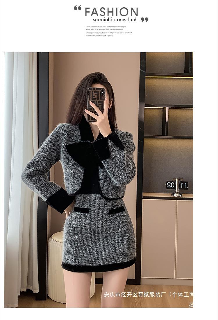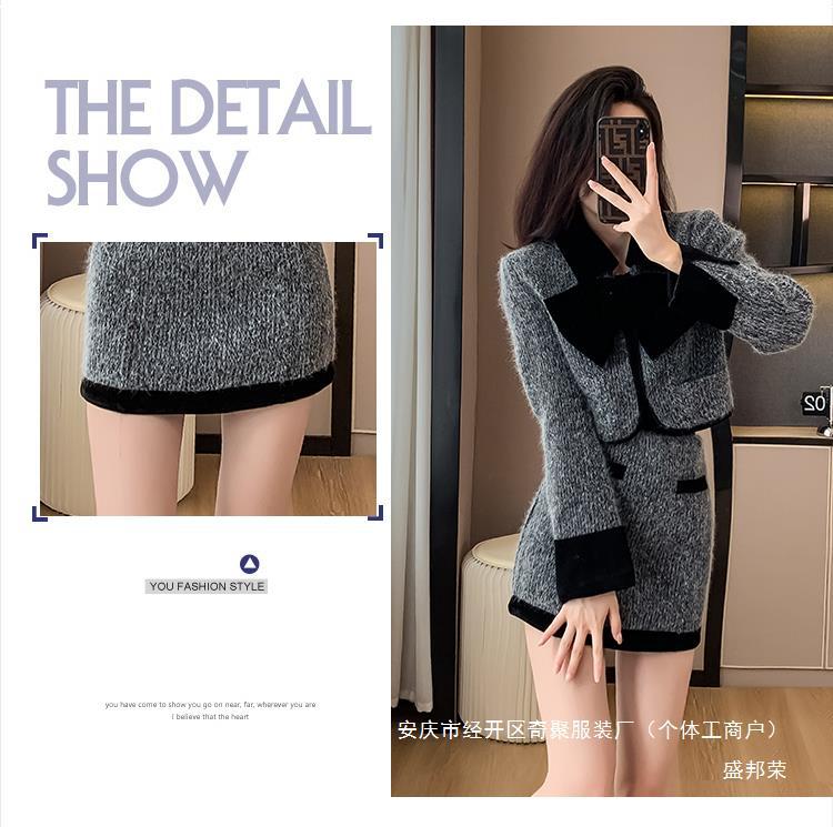 Xiaoxiang 스타일 연예인 세트 여성 가을 및 겨울 하이 엔드 센스 작은 봉제 짧은 코트 높은 허리 스커트 투피스 세트스토어 가기