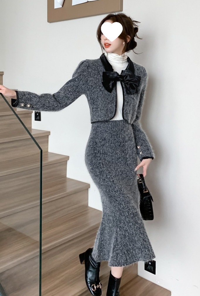 Xiaoxiang 스타일 연예인 세트 여성 가을 및 겨울 하이 엔드 센스 작은 봉제 짧은 코트 높은 허리 스커트 투피스 세트