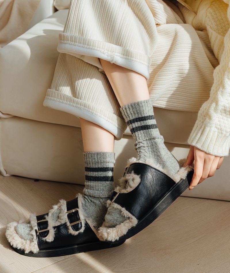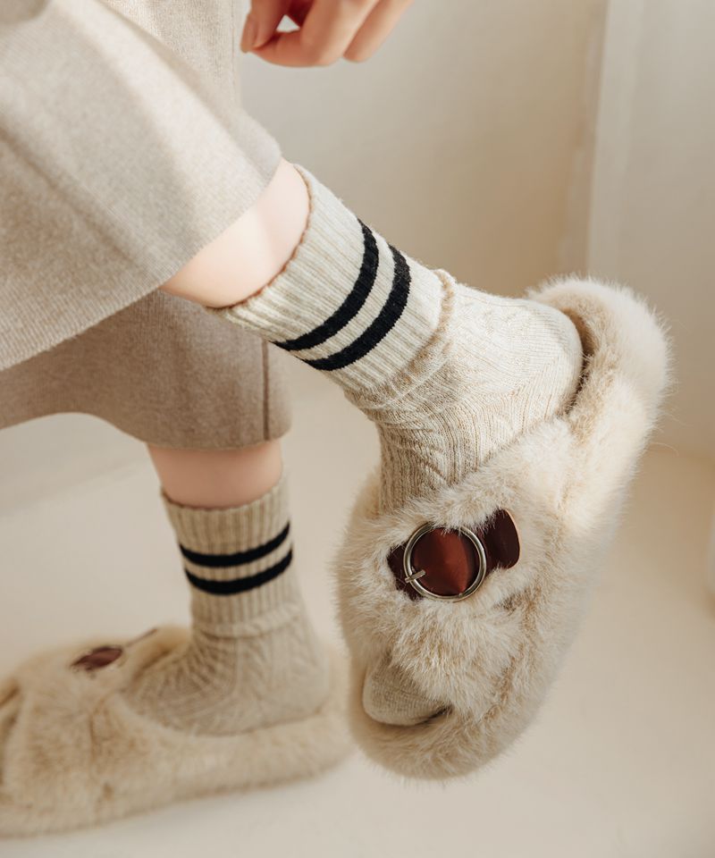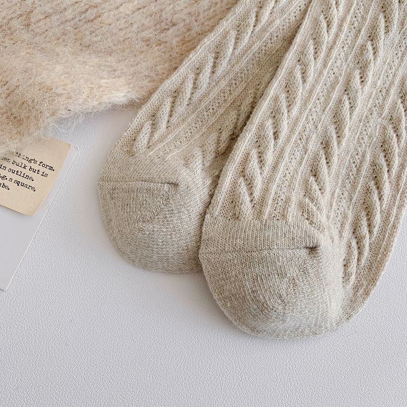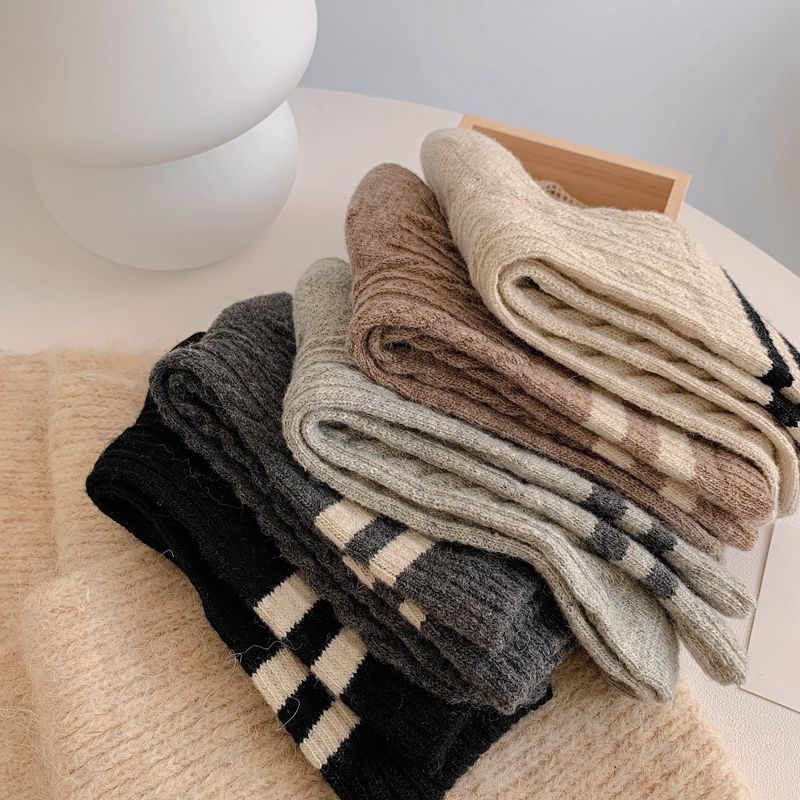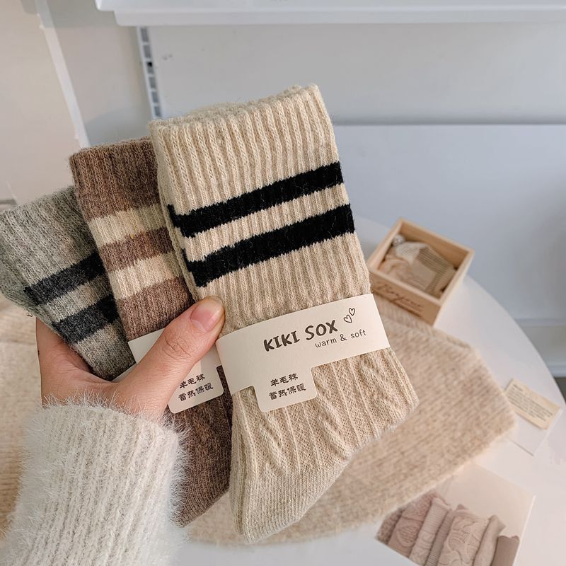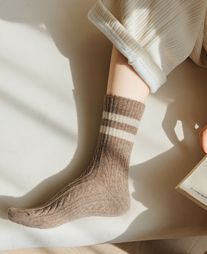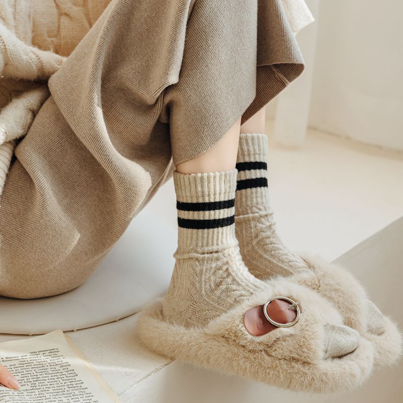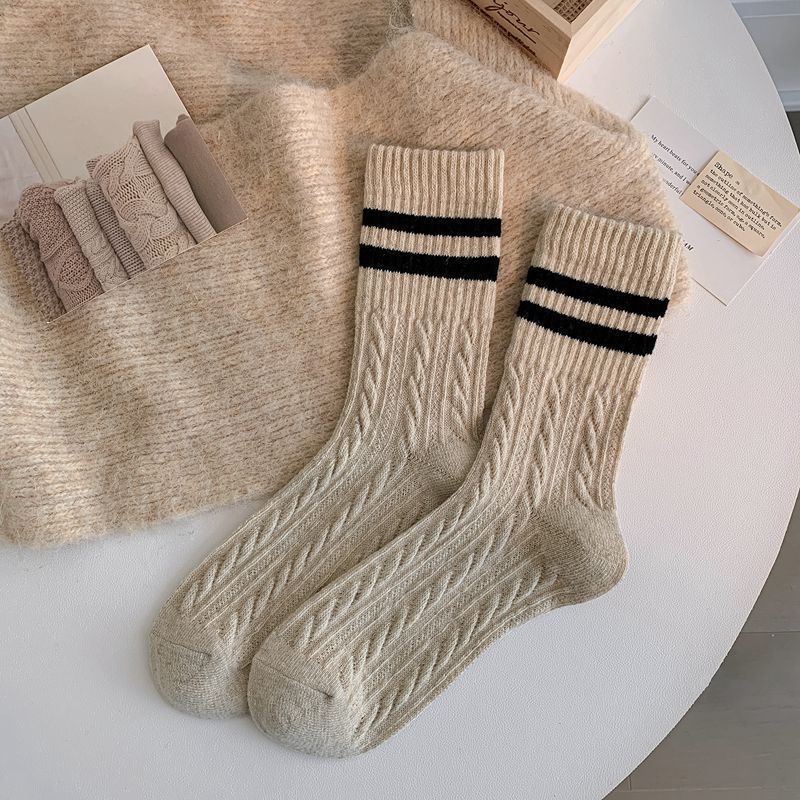 가을과 겨울 따뜻한 양모 트위스트 양말 여성용 한국식 2 바 두꺼운 미드 튜브 양말 빈티지 캐시미어 더미 여성용 양말스토어 가기