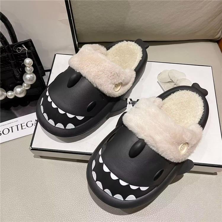 재고 빠른 머리 귀여운 면 슬리퍼 가을과 겨울 실내 따뜻한 커플 여성의 2023 슬리퍼 상어 이동식 세척 가능한 라이너
