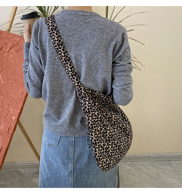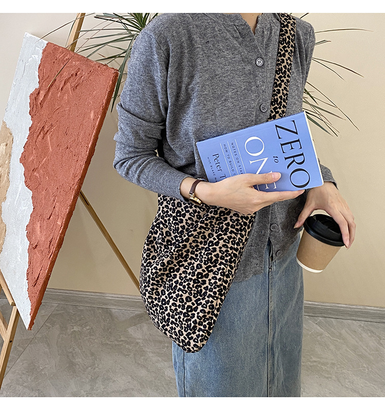 어깨 토트 가방 어깨 2024 유행 어깨 휴대용 대용량 복고풍 가방 새로운 레오파드 무늬 틈새 천 가방