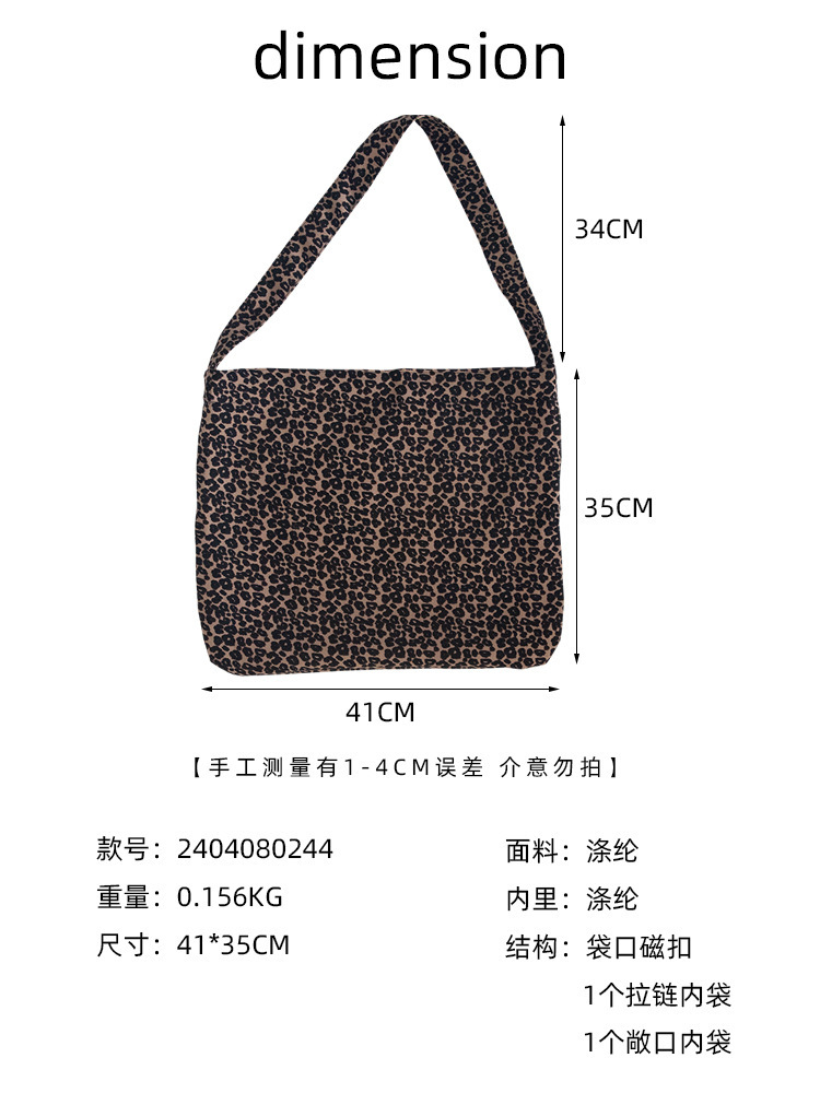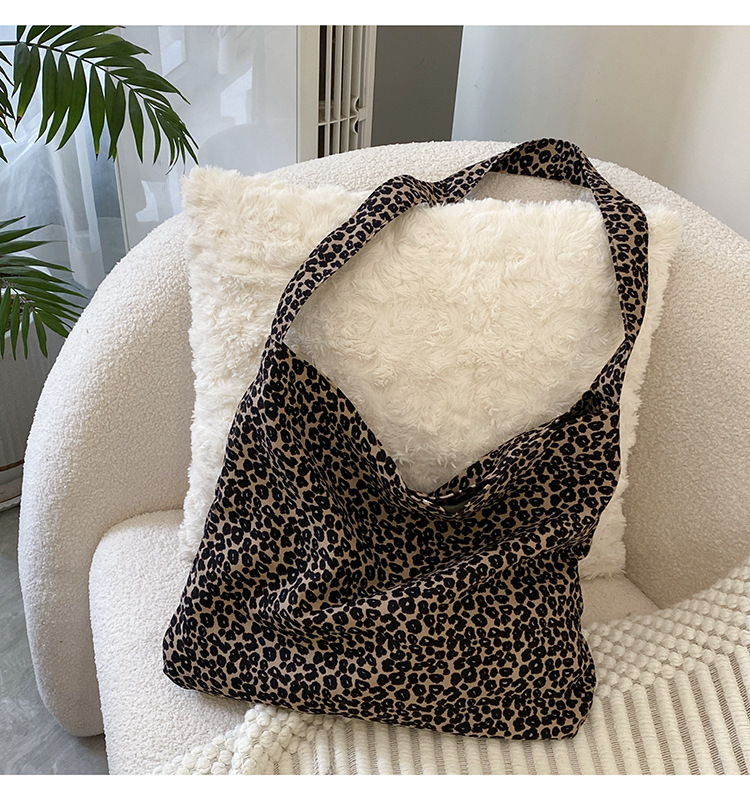 어깨 토트 가방 어깨 2024 유행 어깨 휴대용 대용량 복고풍 가방 새로운 레오파드 무늬 틈새 천 가방스토어 가기