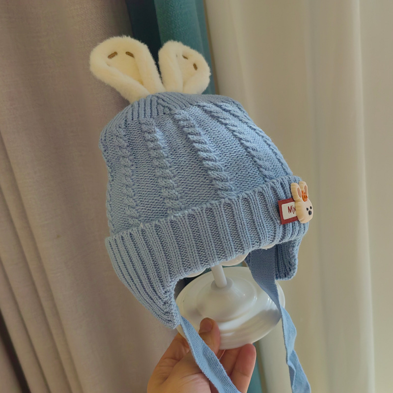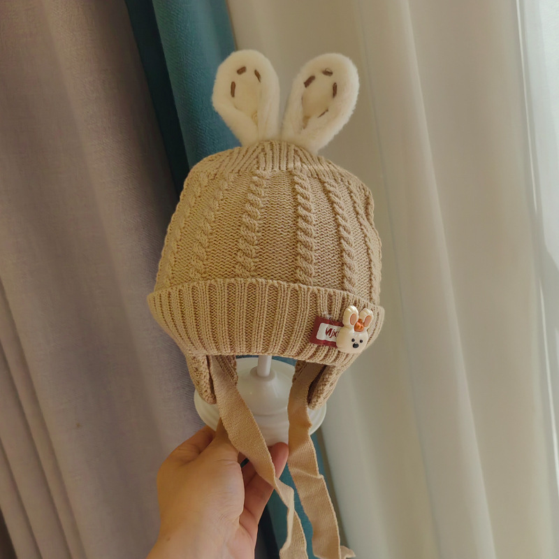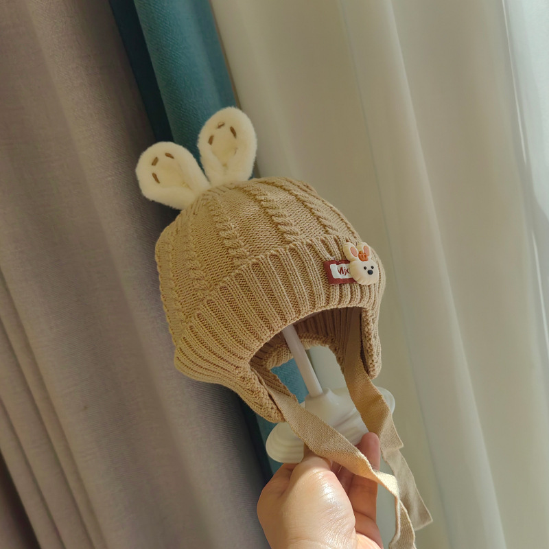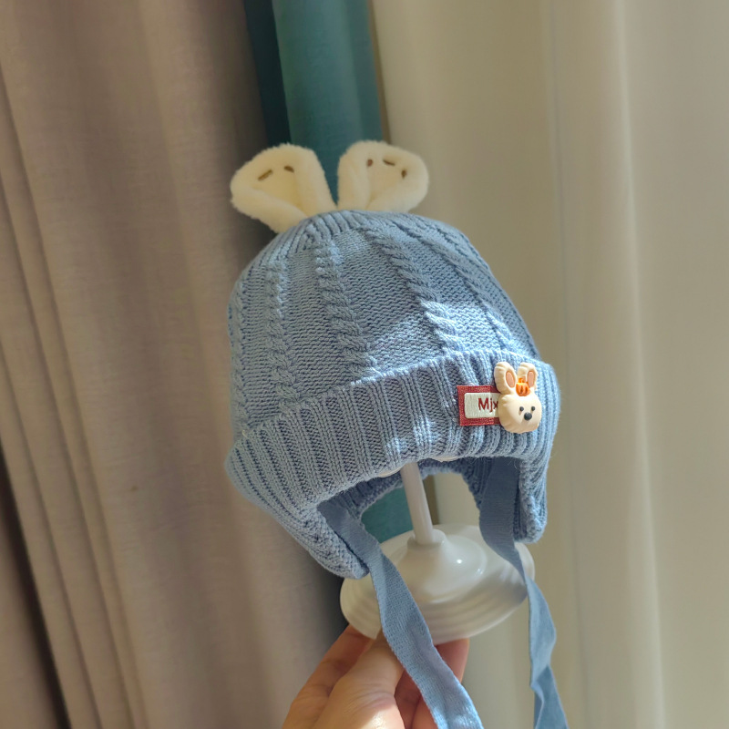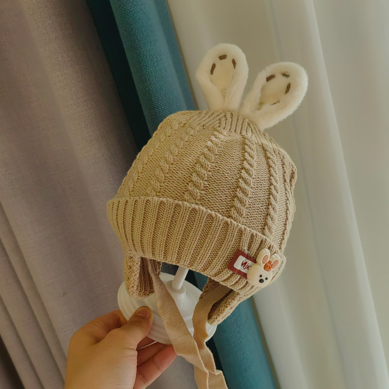 아기 모자 가을과 겨울 귀여운 만화 토끼 귀 니트 양모 모자 소년 소녀 아기 작은 달 나이 귀 보호 모자스토어 가기
