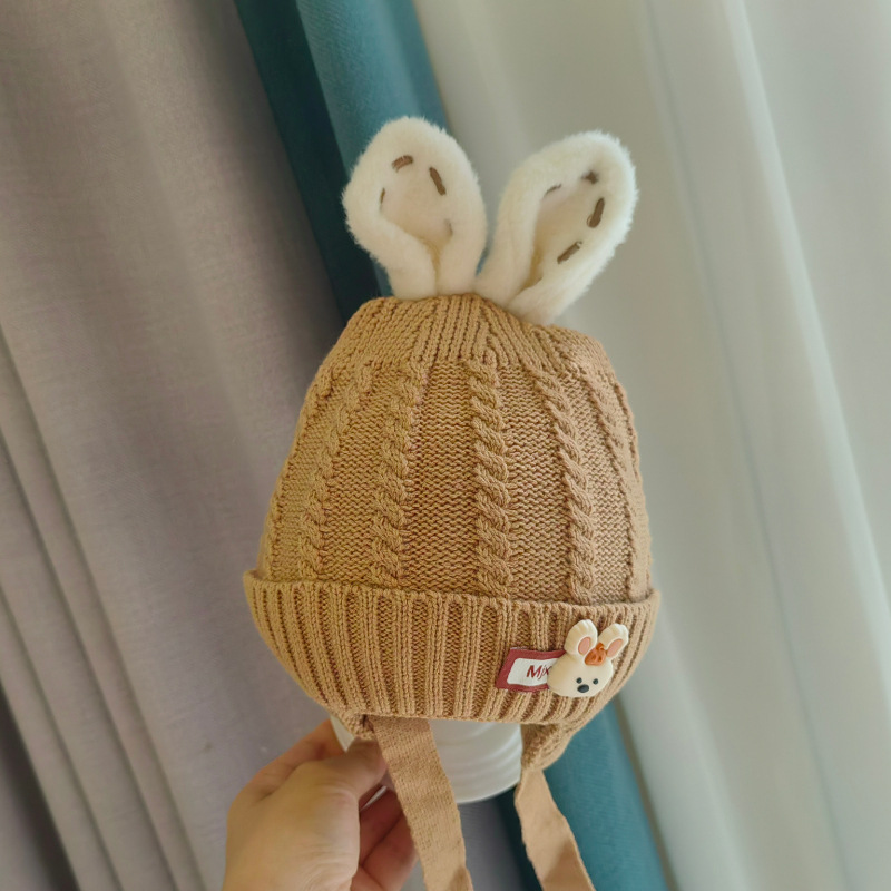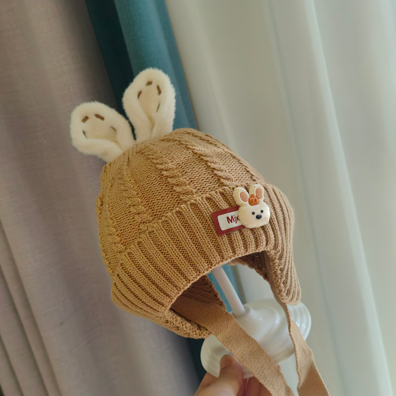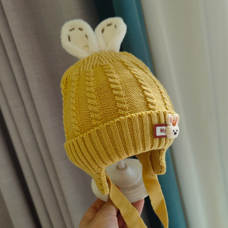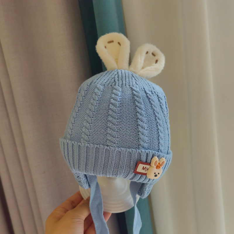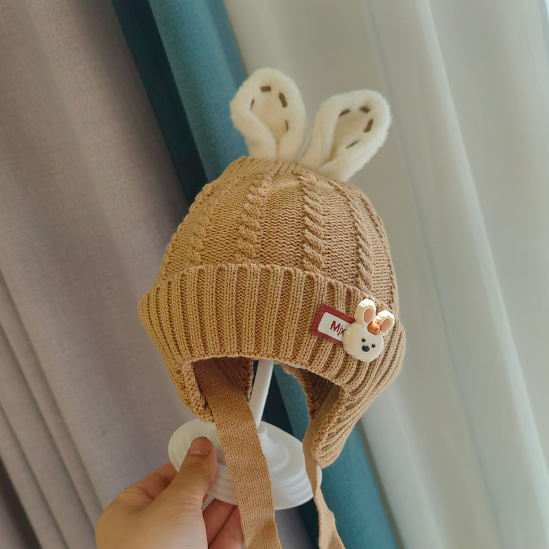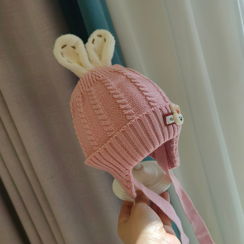 아기 모자 가을과 겨울 귀여운 만화 토끼 귀 니트 양모 모자 소년 소녀 아기 작은 달 나이 귀 보호 모자스토어 가기
