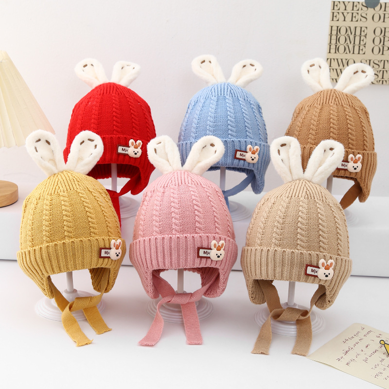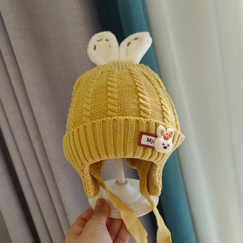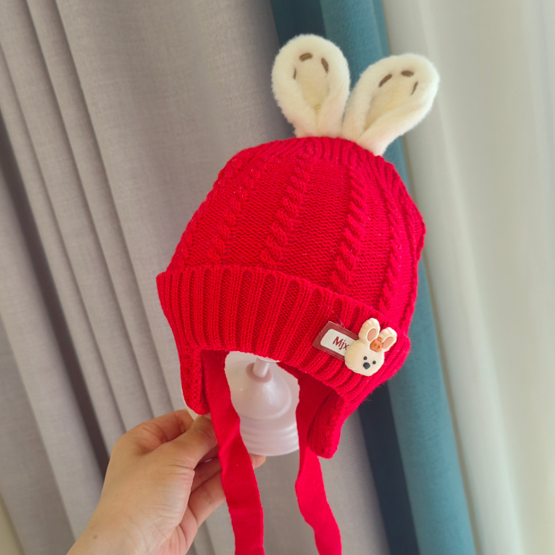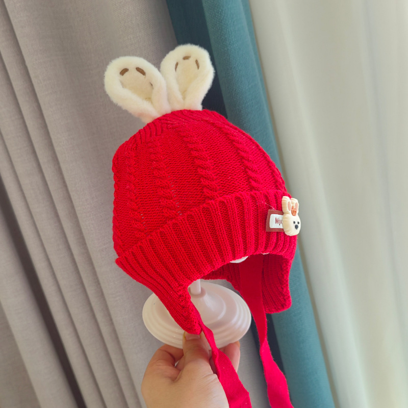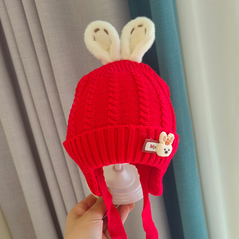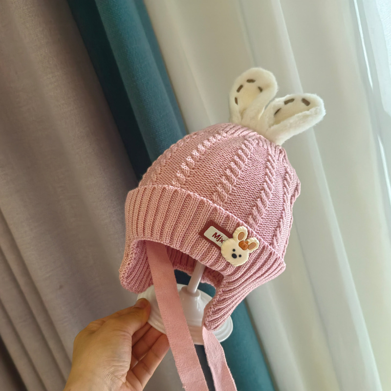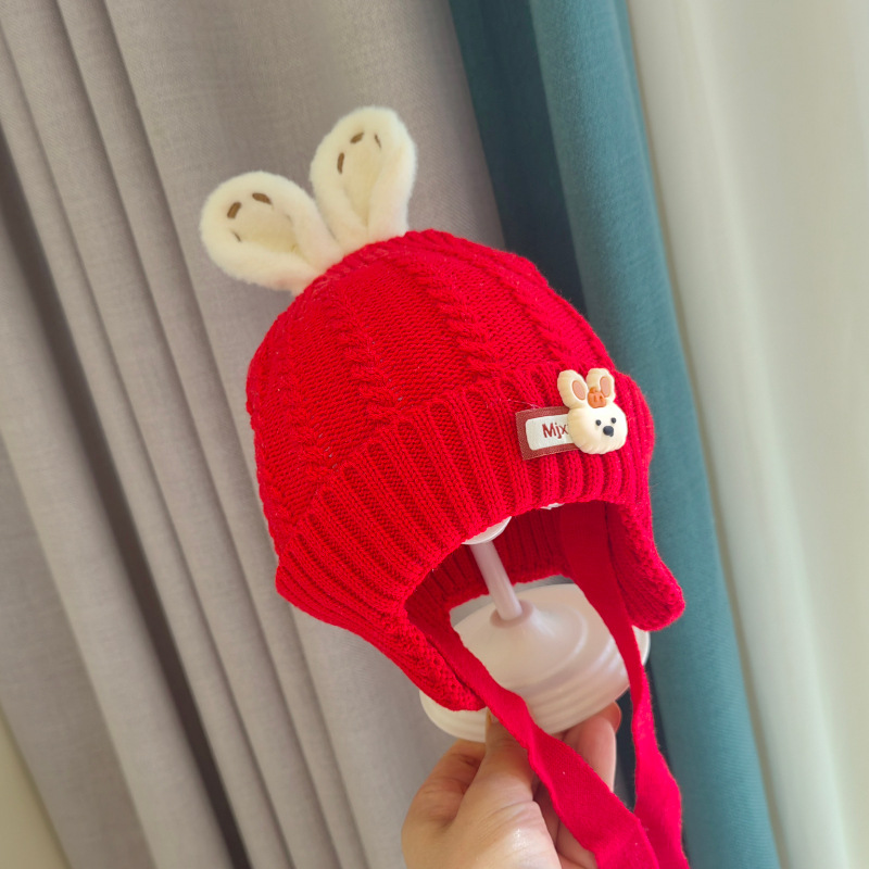 아기 모자 가을과 겨울 귀여운 만화 토끼 귀 니트 양모 모자 소년 소녀 아기 작은 달 나이 귀 보호 모자
