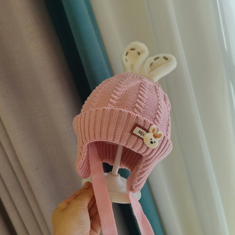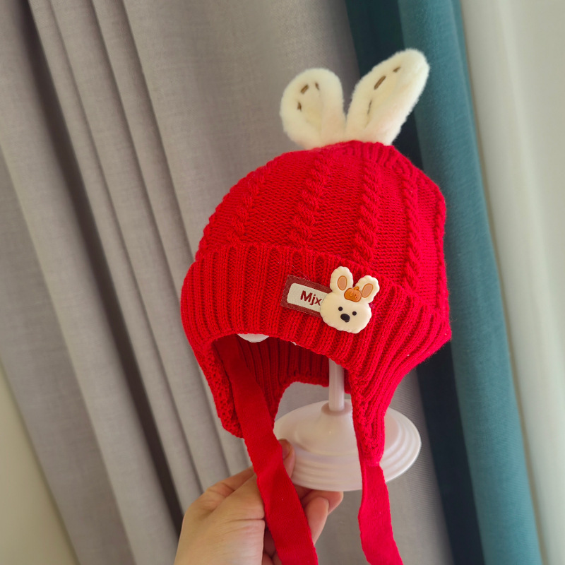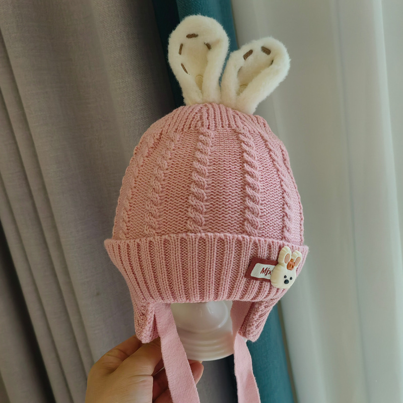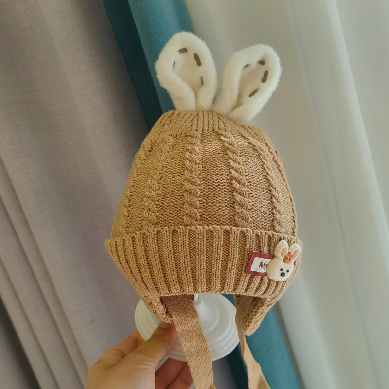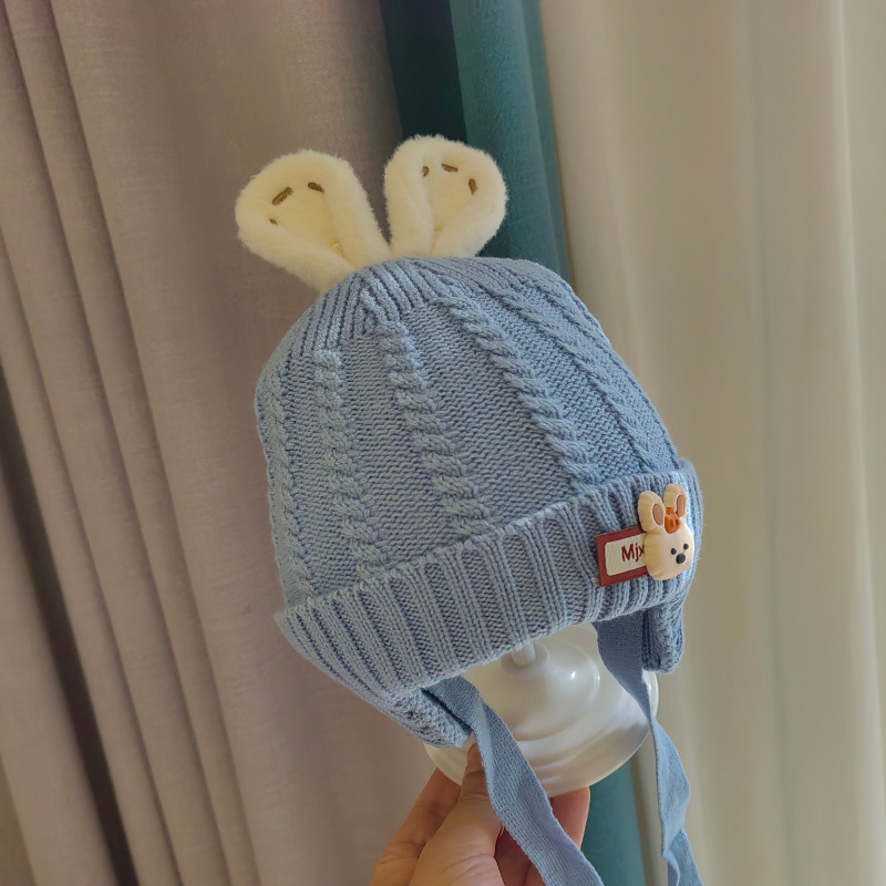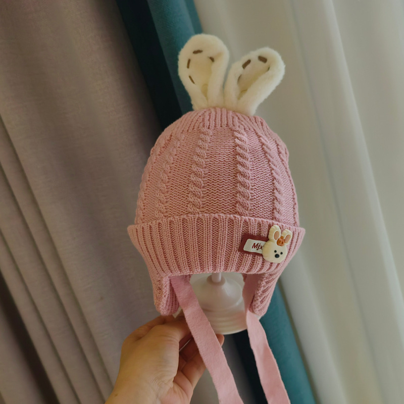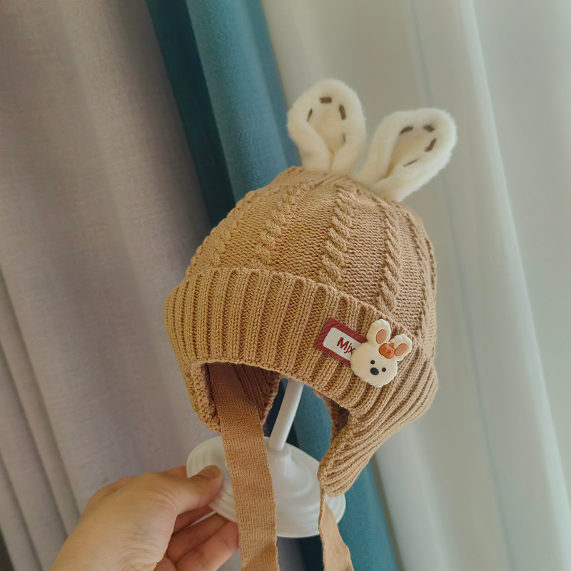 아기 모자 가을과 겨울 귀여운 만화 토끼 귀 니트 양모 모자 소년 소녀 아기 작은 달 나이 귀 보호 모자