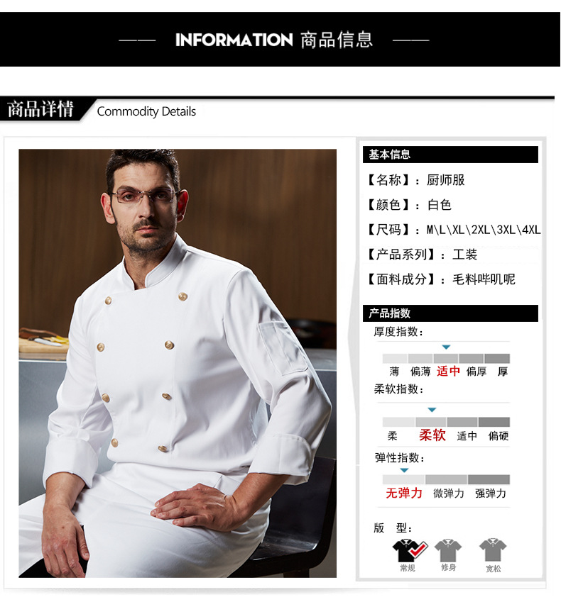 고급 주방장은 긴팔 남성용 가을과 겨울 플러스 사이즈 고급 호텔 주방 레스토랑을 제공합니다.스토어 가기