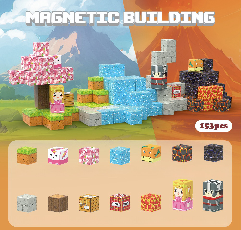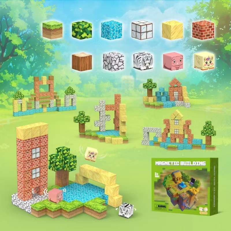 Minecraft 마그네틱 블록 빌딩 블록 1 드래그 8 슈퍼 고품질 세트 모델 장난감 게임 주변 장면 국경스토어 가기