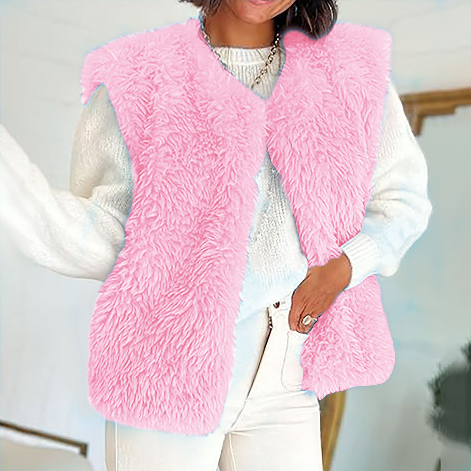 2025년 해외직구 아마존, 알리익스프레스, 테뮤 겨울 여성용 긴 털 조끼 민소매 여성 상의 패션스토어 가기