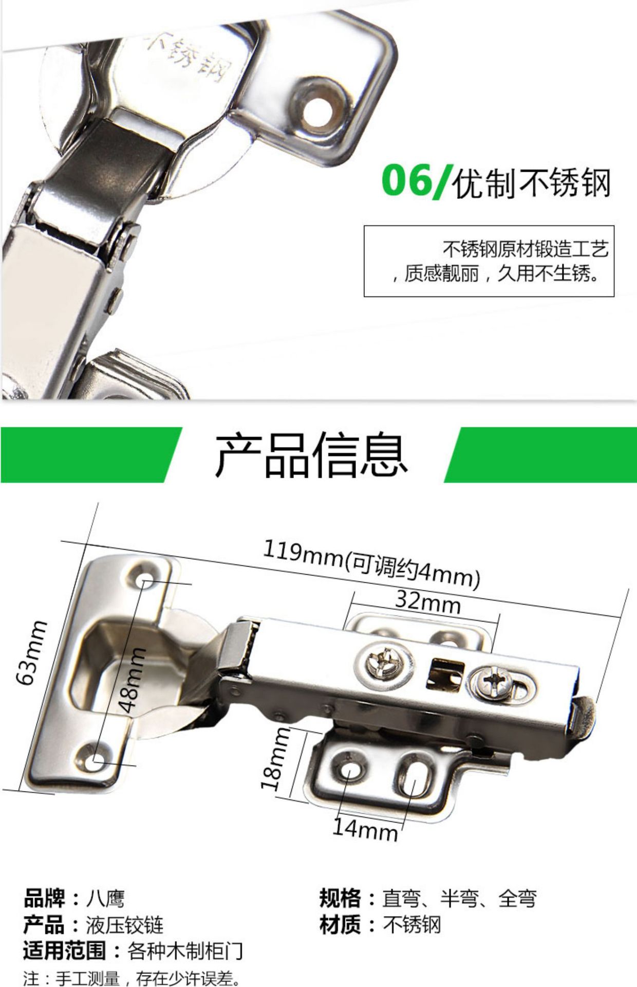 스테인레스 스틸 경첩 캐비닛 옷장 도어 댐핑 힌지 매체 벤드 힌지 버퍼 유압 항공기 스프링 힌지스토어 가기