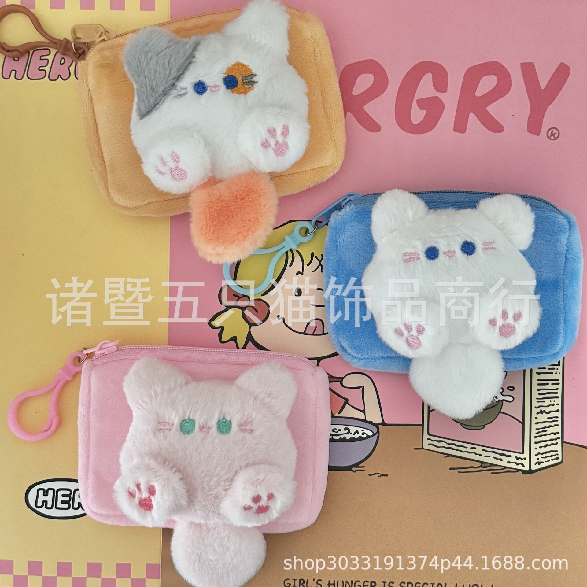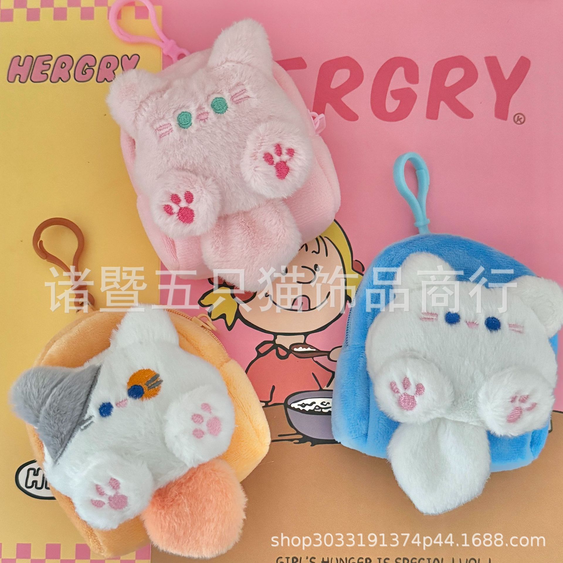 Ins 귀여운 부드러운 귀여운 고양이 미니 동전 지갑 헤드셋 보관 가방 휴대용 학교 가방 펜던트 인형 선물스토어 가기