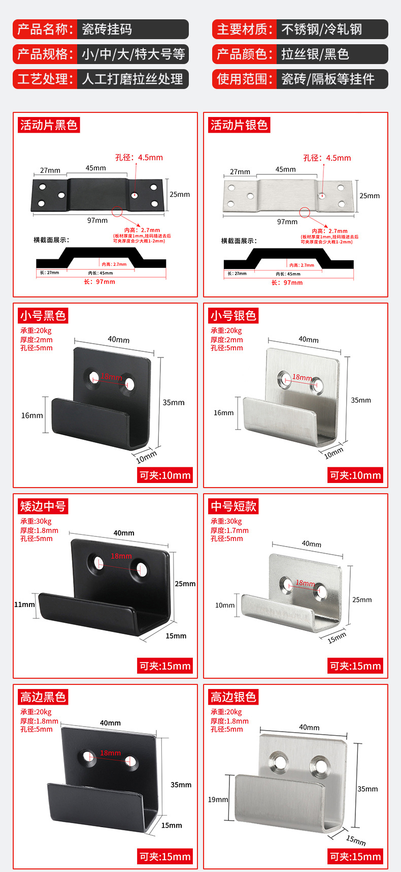 스테인레스 스틸 타일 후크 교수형 코드 홀더 건식 교수형 펜던트 스냅 고정 버클 철 이음쇠 고정