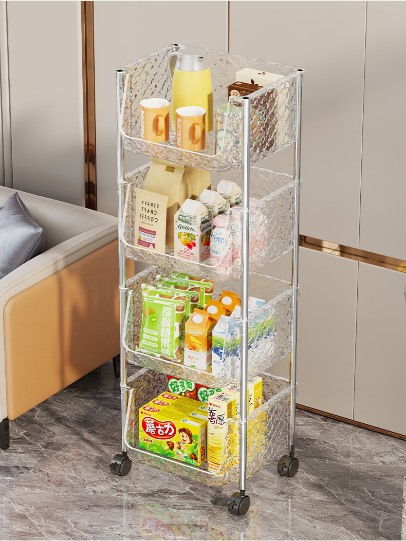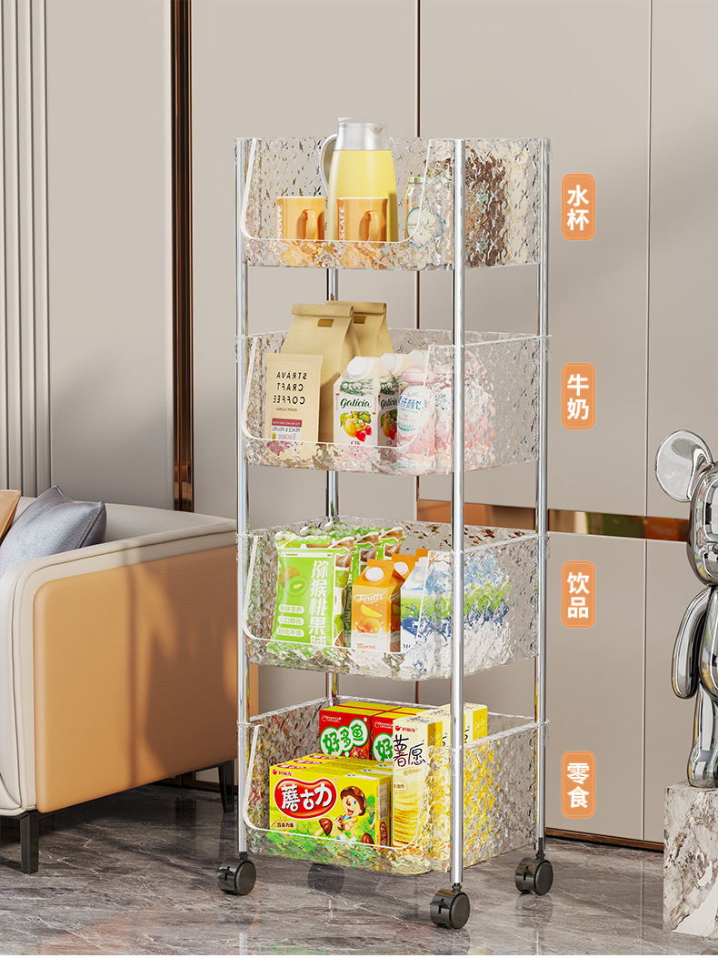 아크릴 스토리지 랙 거실 스낵 작은 카트 모바일 책장 바닥 다층 화장품 스토리지 랙