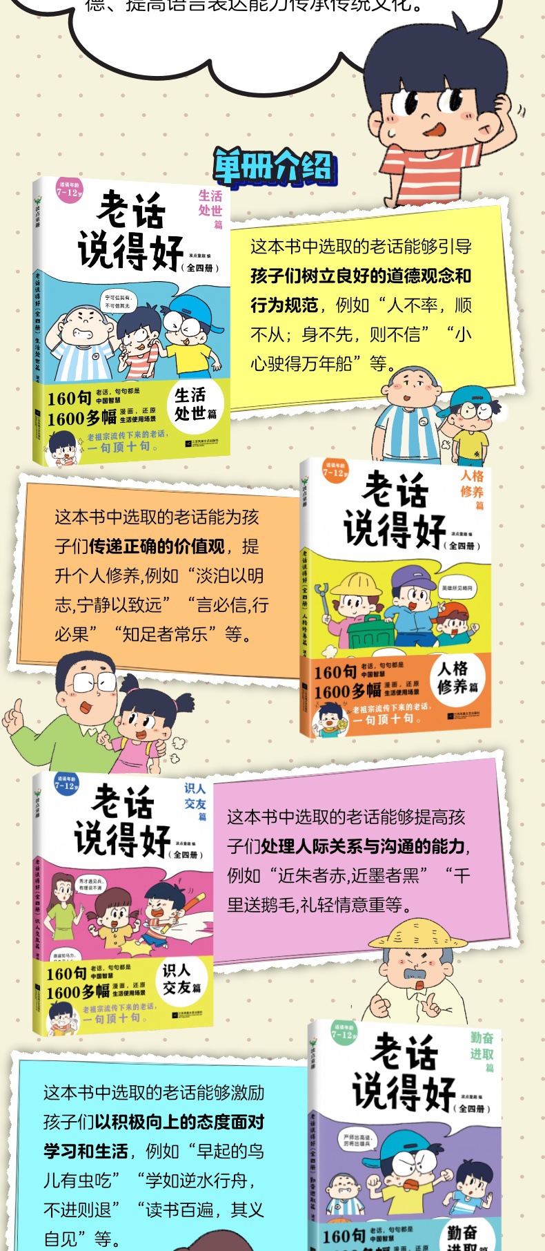 오래된 속담처럼, 4 권, 1 문장, 상위 10 문장, 만화, 중국의 지혜, 7-12 세, EQ를 개선하기위한 과외 읽기