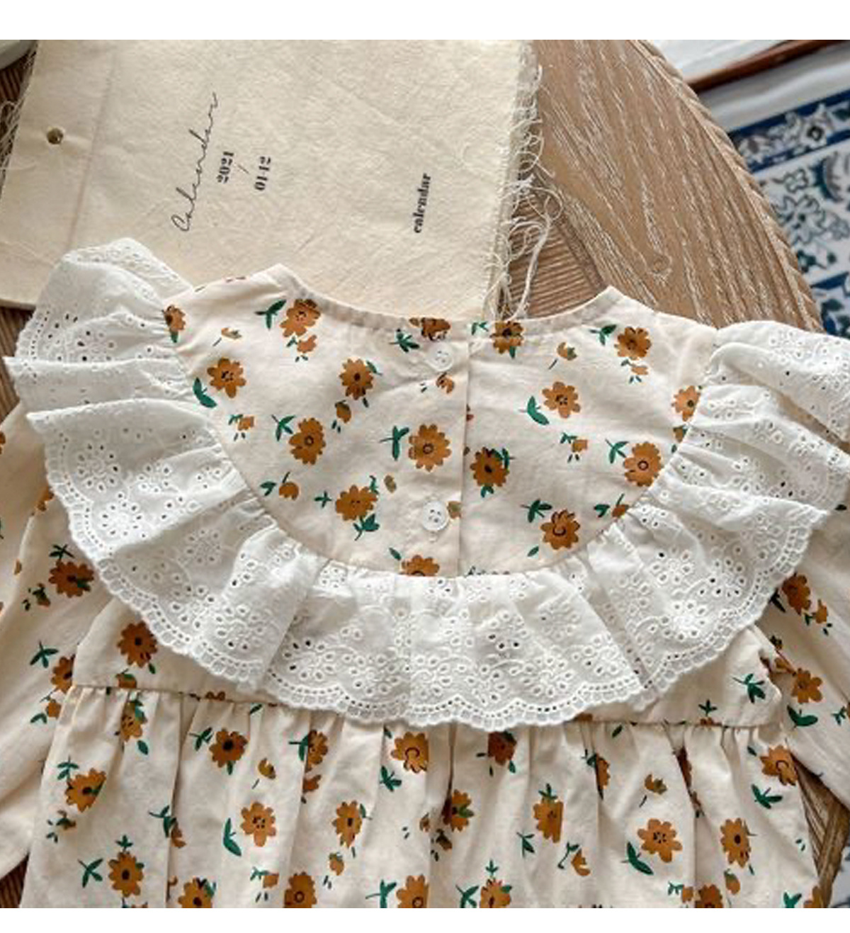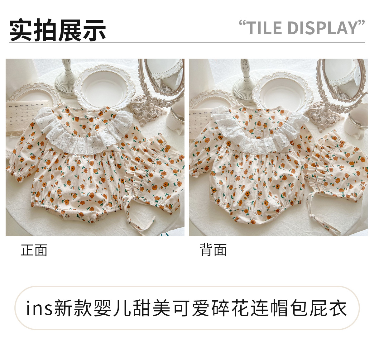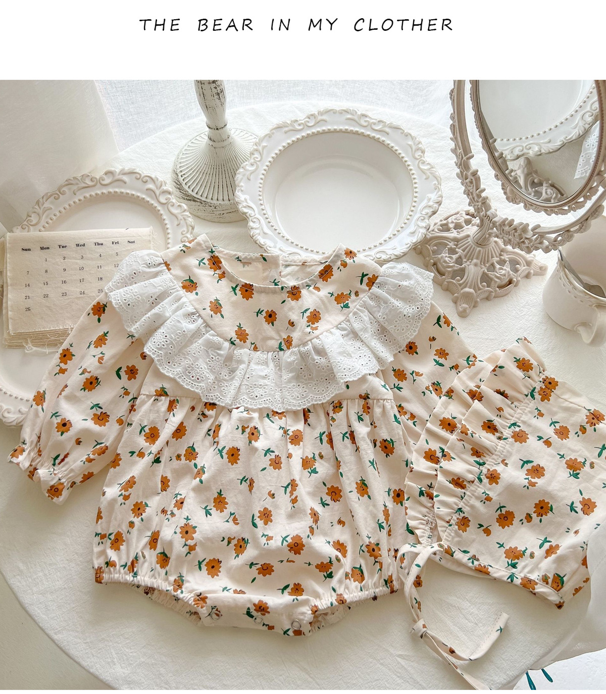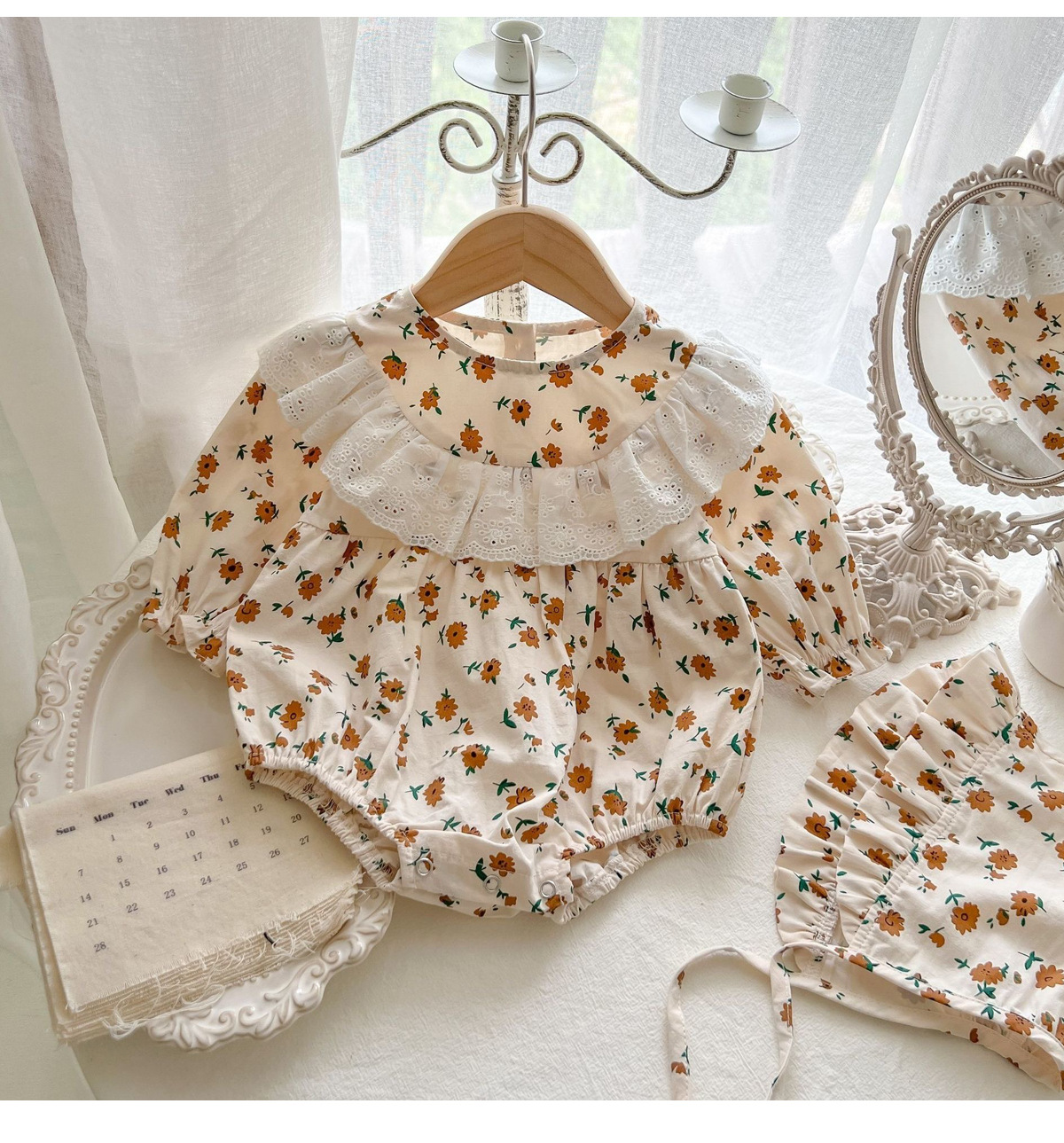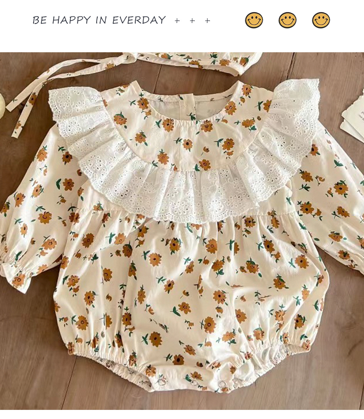 한국 스타일 2024 봄과 가을 아기 옷 신생아 소녀 아기 레이스 크루 넥 작은 꽃 긴 소매 하카 등반 옷