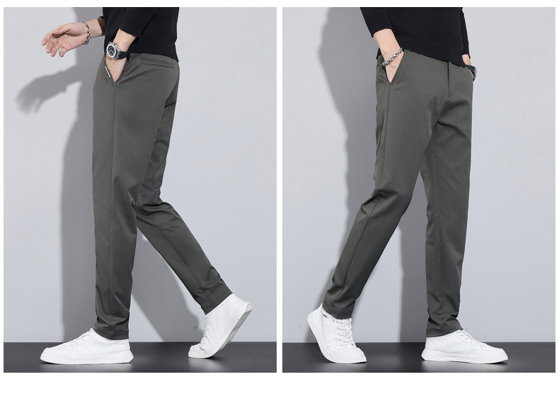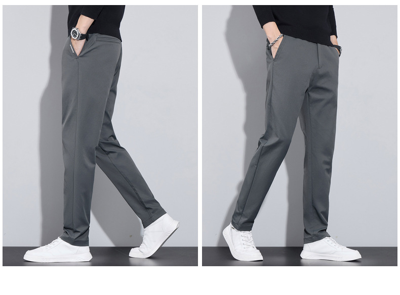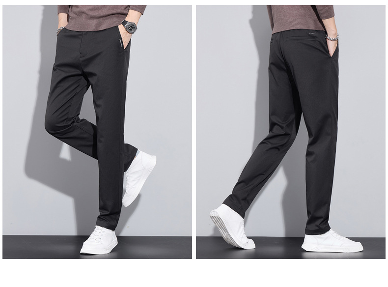 가을 새 바지 남성용 슬림 핏 마이크로 탄성 솔리드 컬러 미드 웨이스트 올 매치 데일리 베이직 남성 라이트 비즈니스 캐주얼 바지스토어 가기