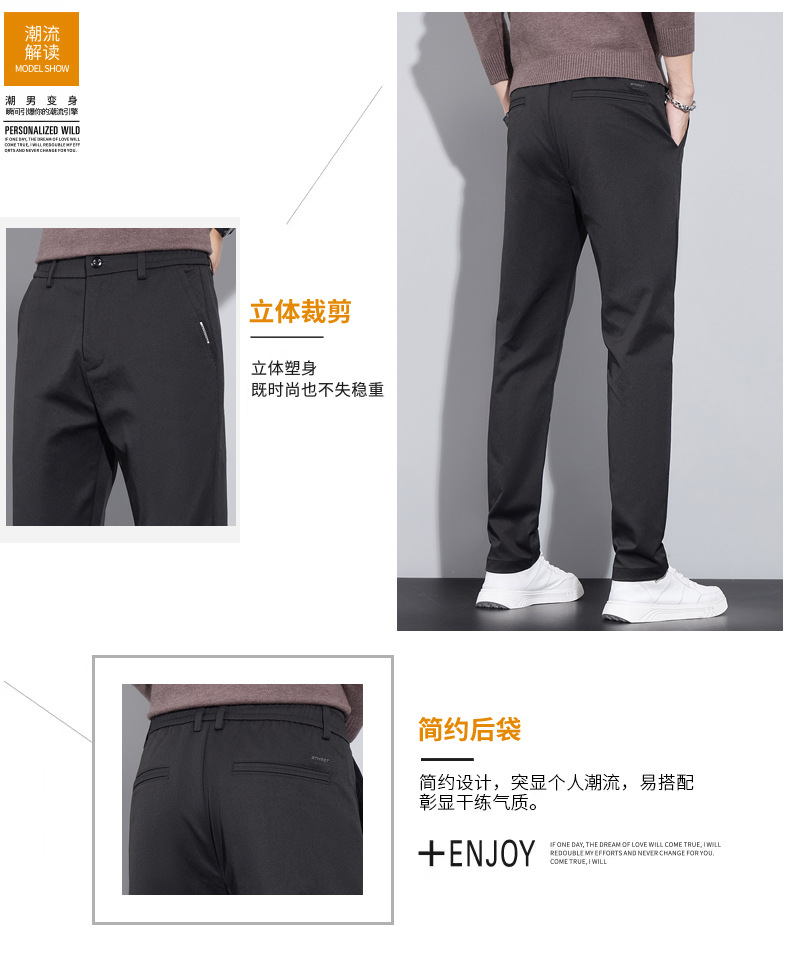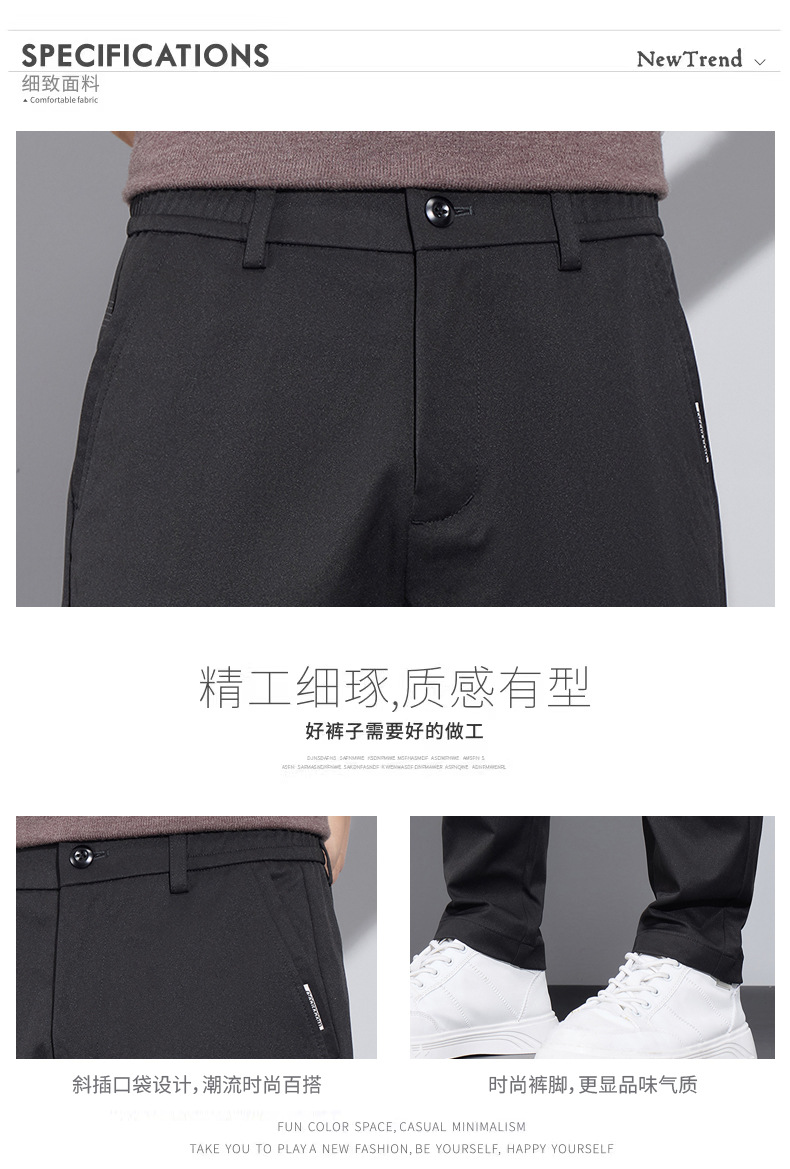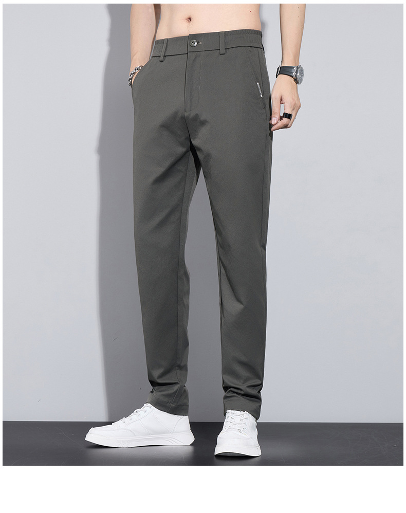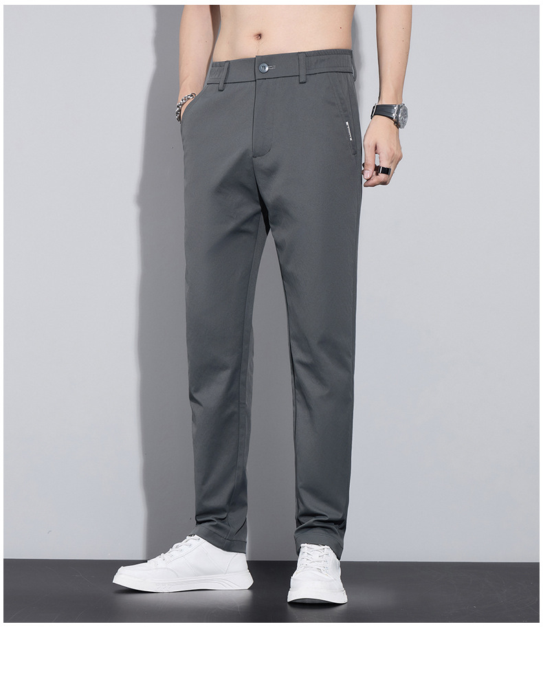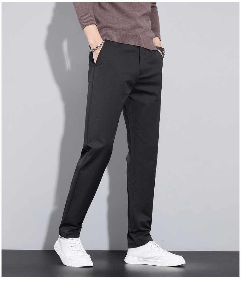 가을 새 바지 남성용 슬림 핏 마이크로 탄성 솔리드 컬러 미드 웨이스트 올 매치 데일리 베이직 남성 라이트 비즈니스 캐주얼 바지