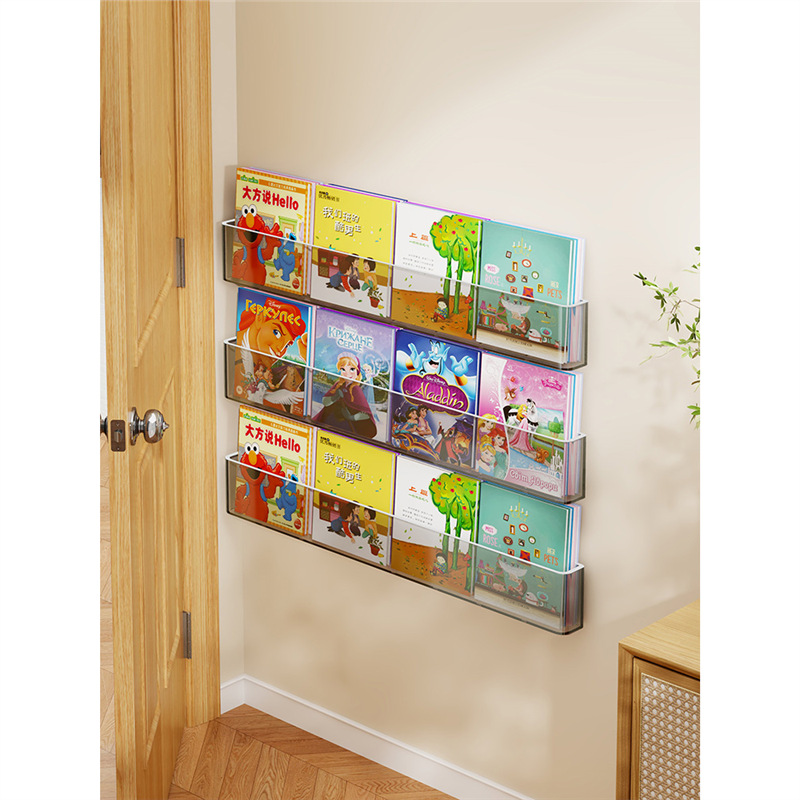펀치없는 벽 매달린 벽 책꽂이 투명한 아크릴 어린이 그림책 디스플레이 랙 벽-매달려있는 문 후면 보관 랙