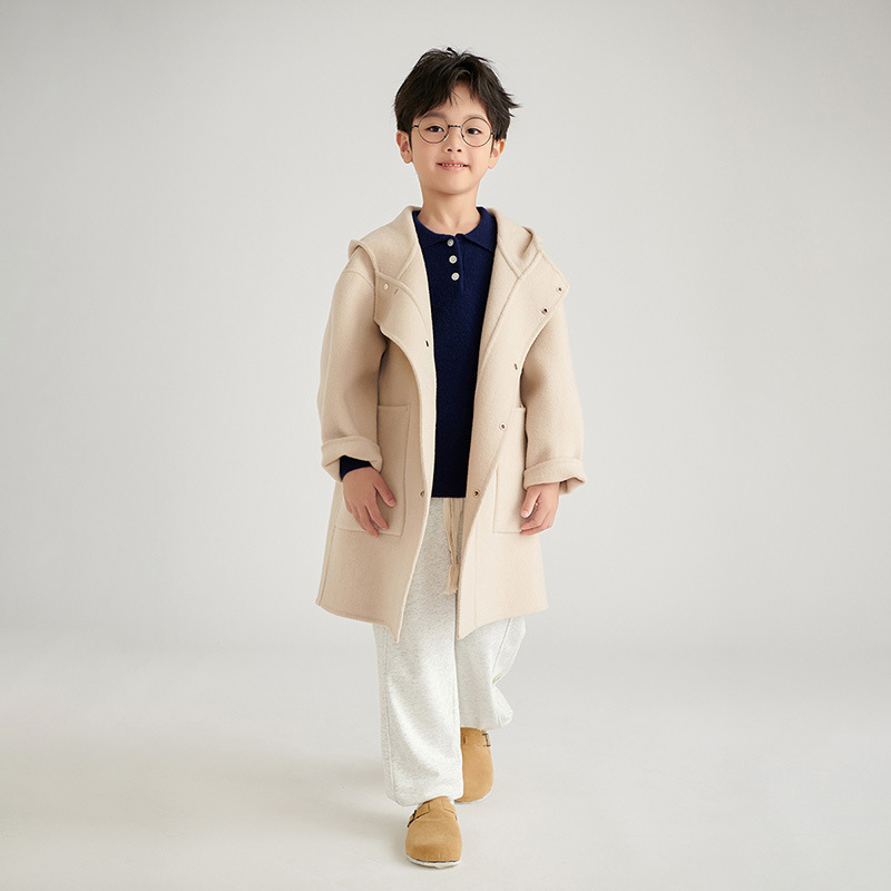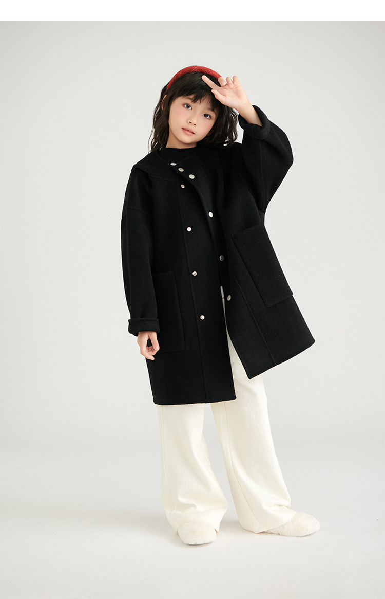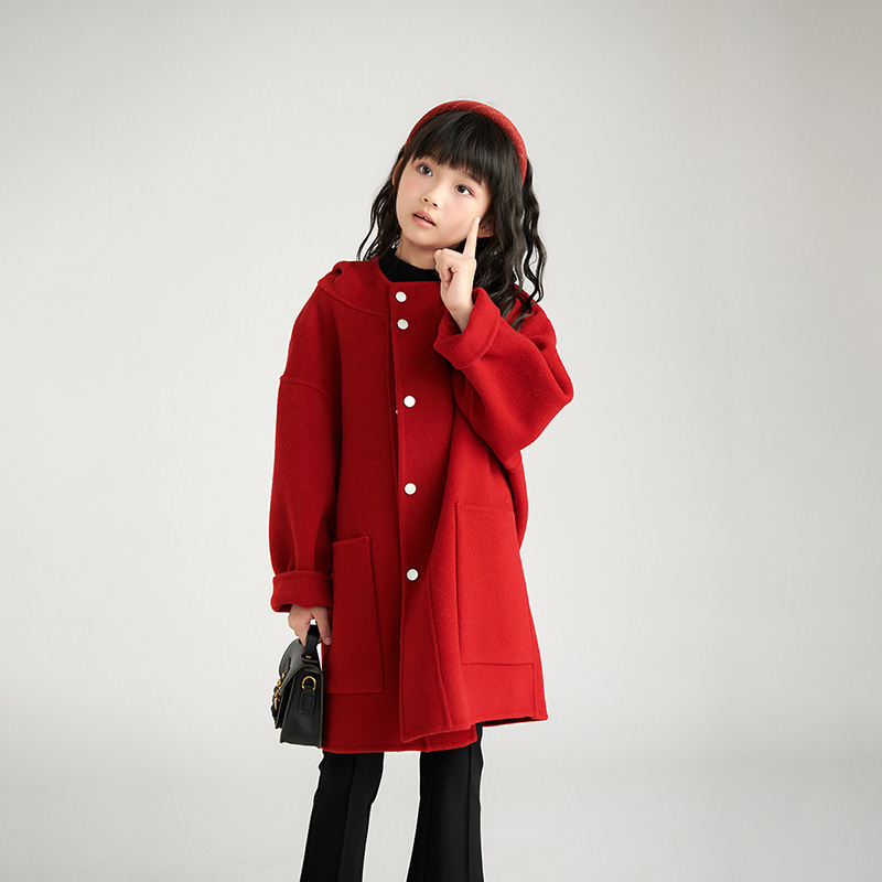 소녀 양면 캐시미어 코트 가을과 겨울 새 소년 100 순수 양모 두꺼운 중장 어린이 모직 코트스토어 가기