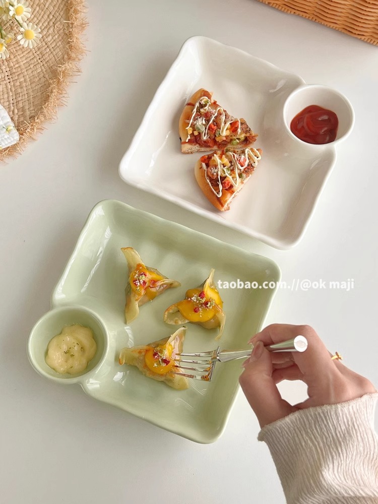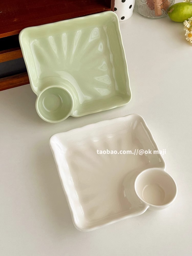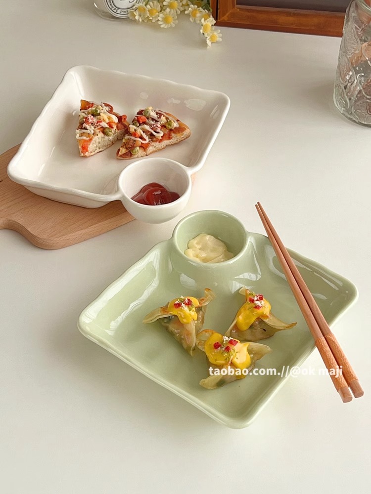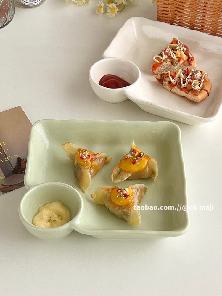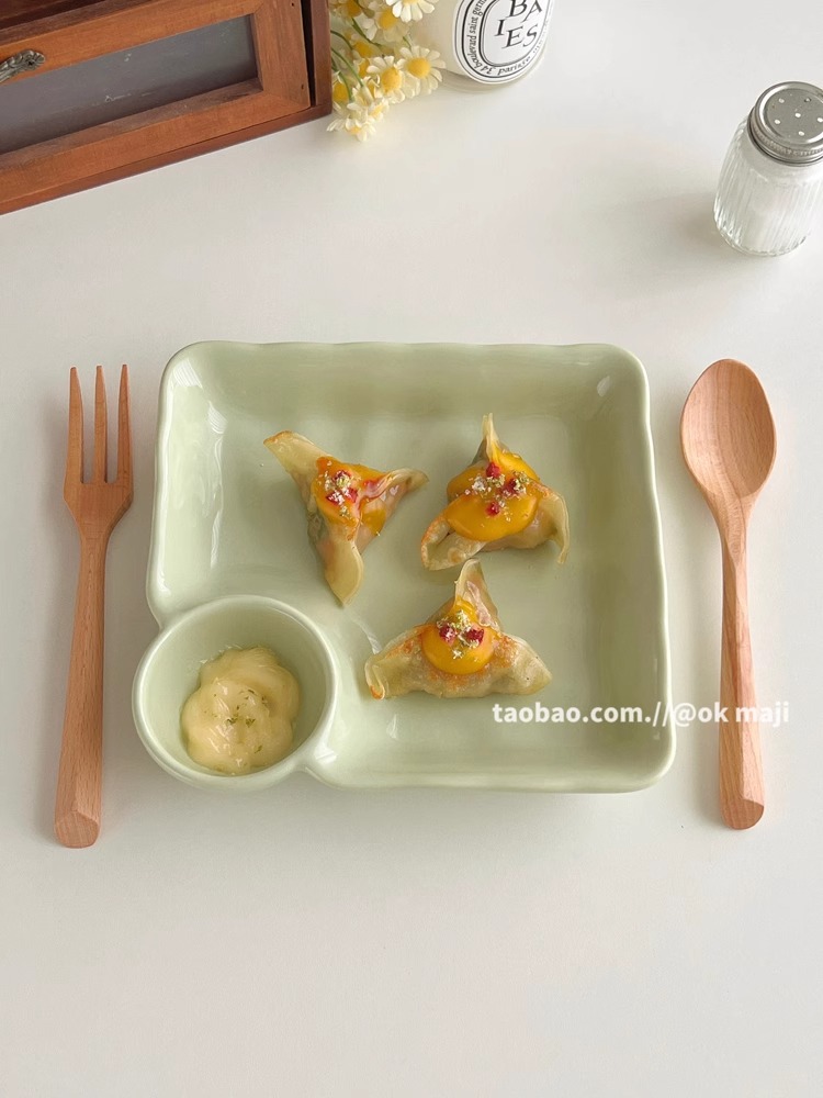 만두 판 새우 접시 식초 접시 세라믹 식기 가정용 접시 분할 판 고급 만두 그릇 만두 판