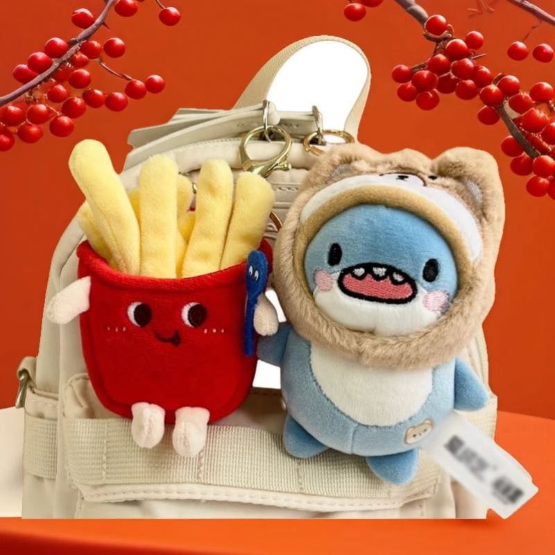 프랑스 프라이 펜던트 상어 키 체인 펜던트 여성용 절묘한 귀여운 봉제 인형 학생 스쿨 백 펜던트 귀여운스토어 가기