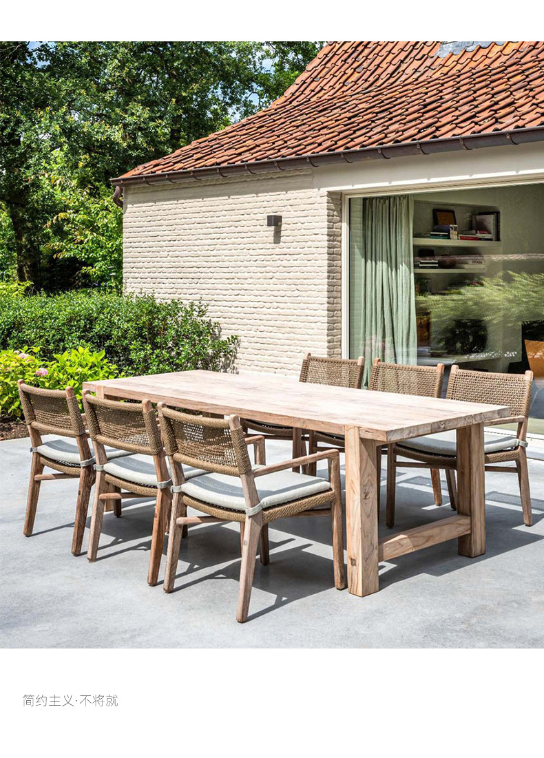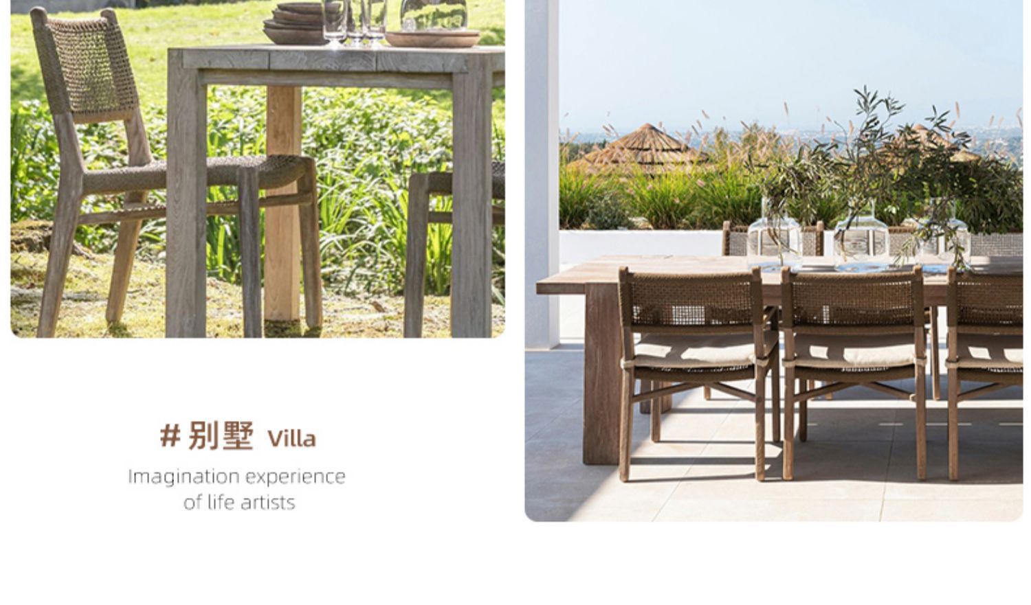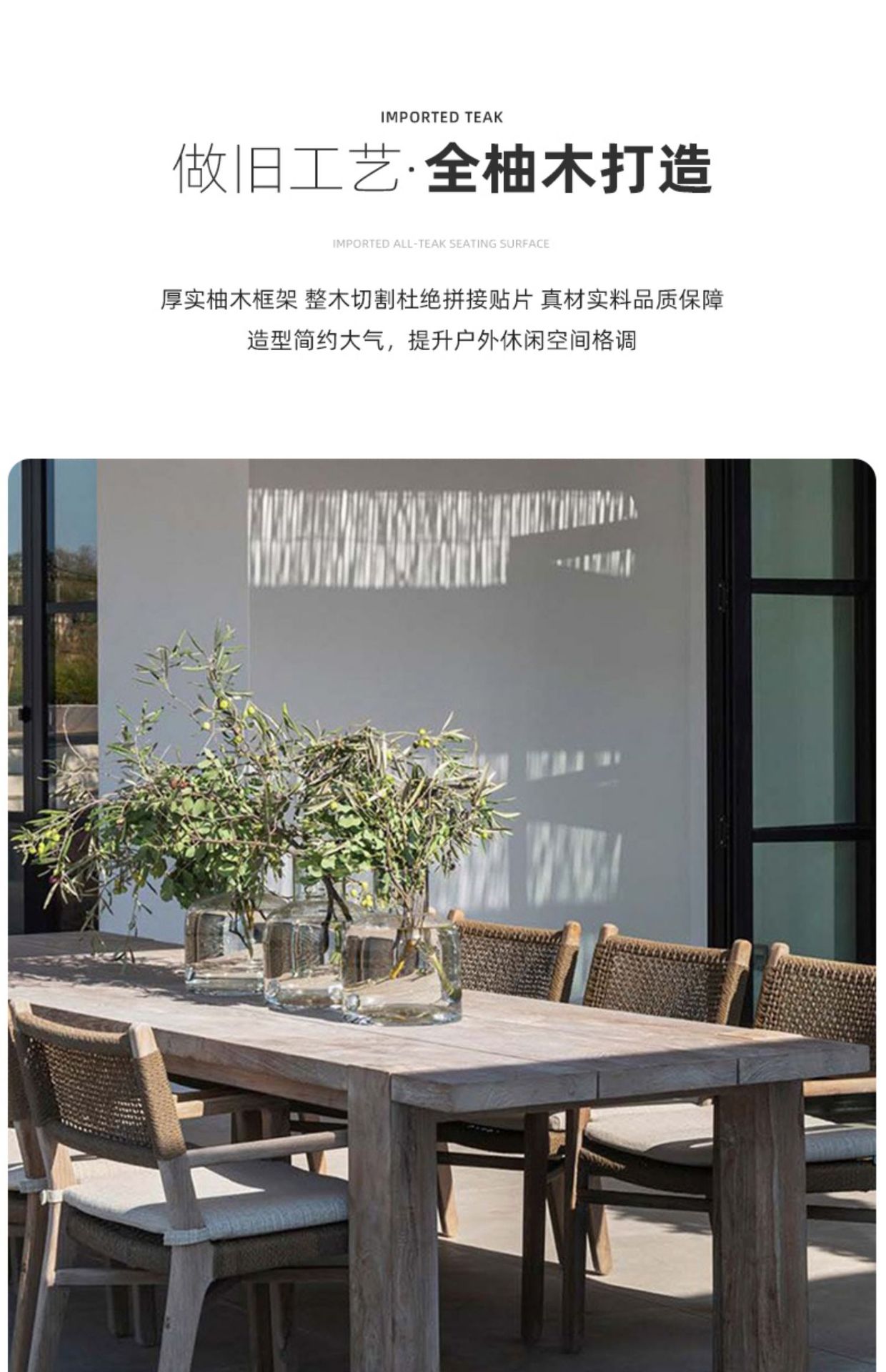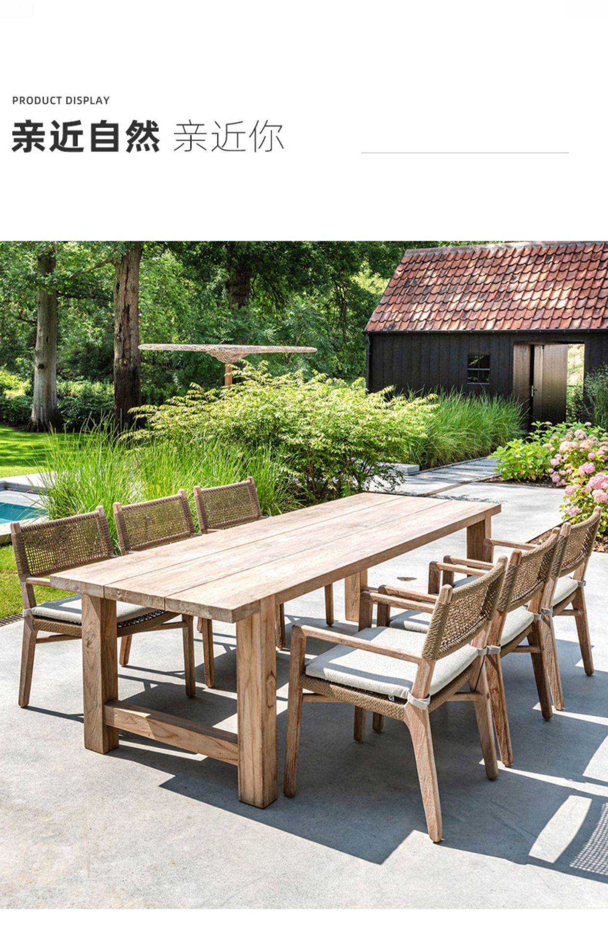 야외 테이블과 의자 코트야드 빌라 티크 롱 테이블 방수 홈스테이 야외 테라스 가든 솔리드 우드 다이닝 테이블과 의자 조합스토어 가기