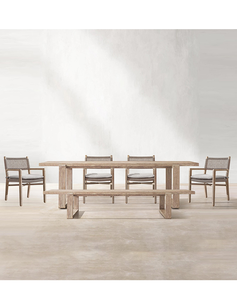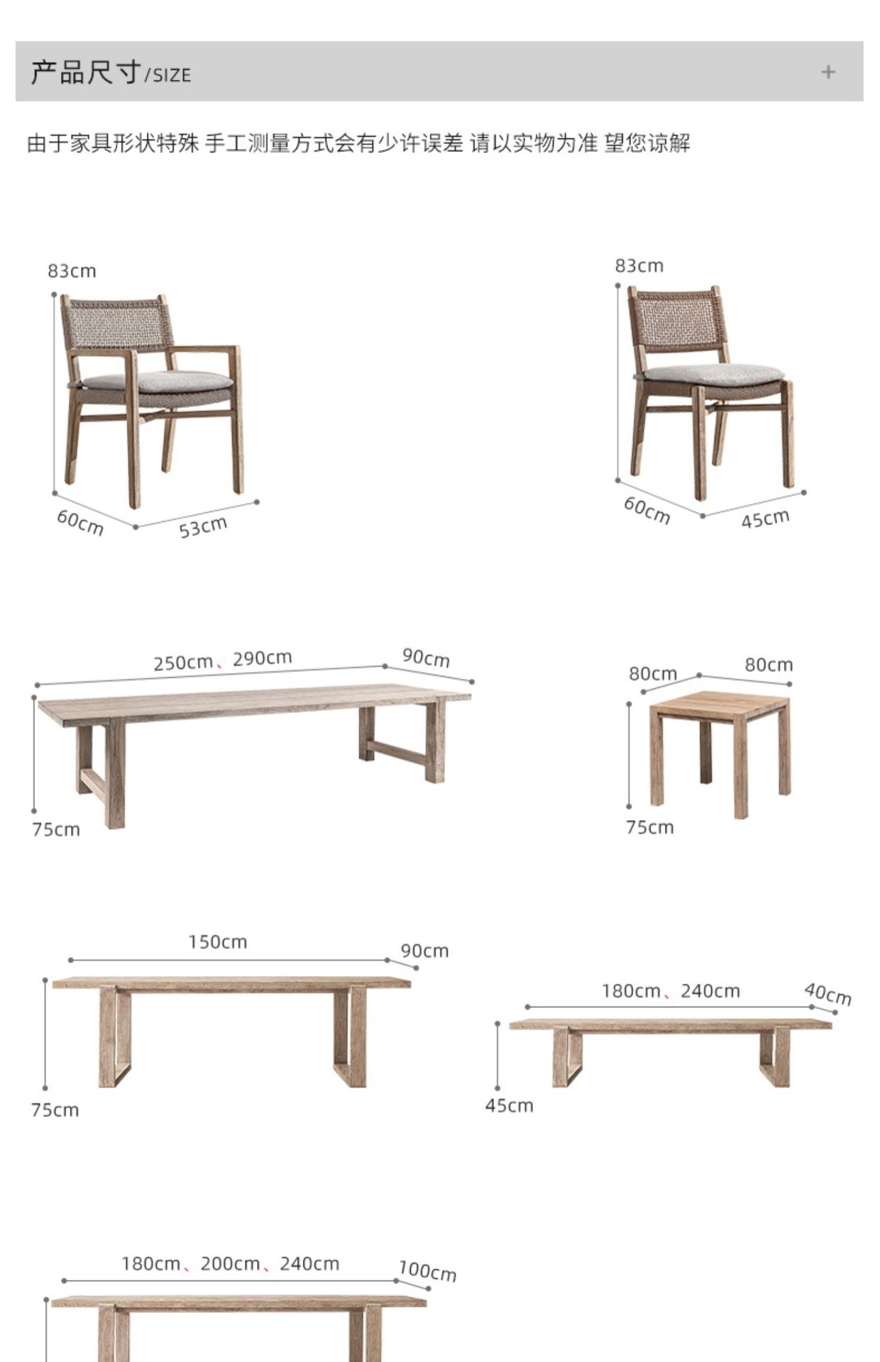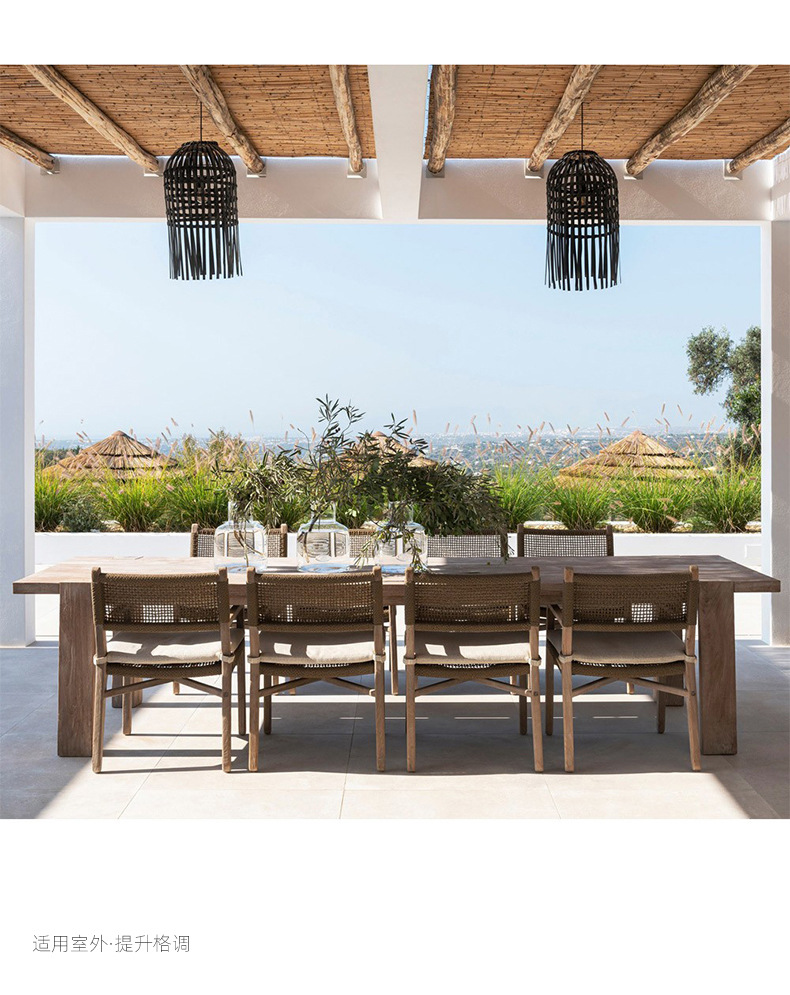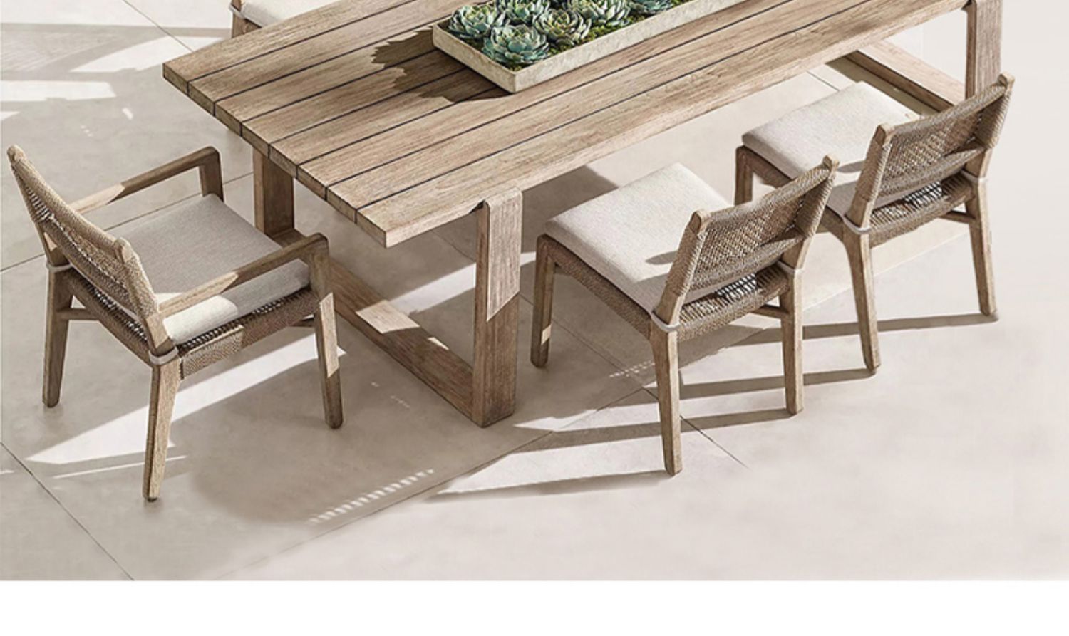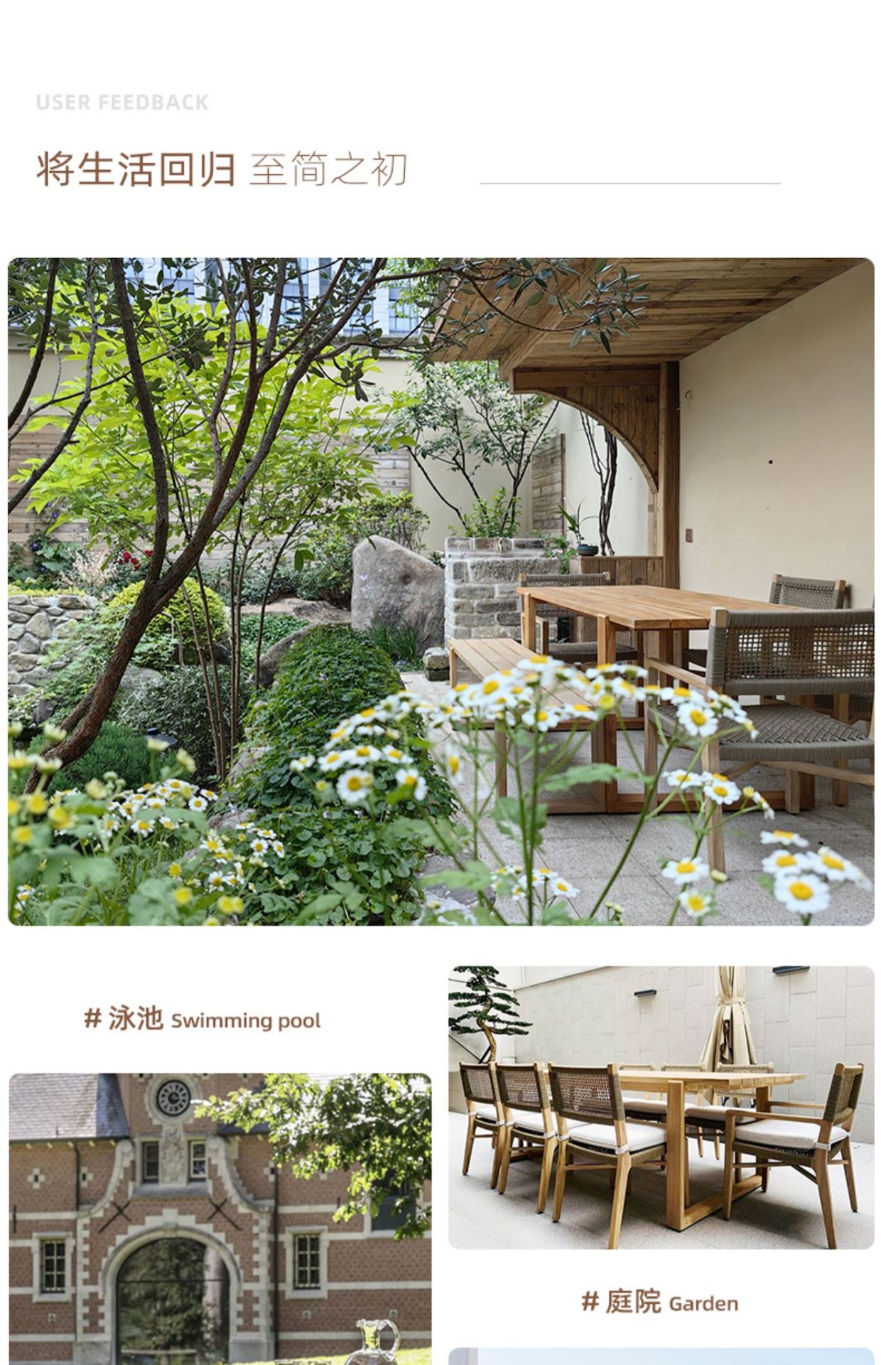 야외 테이블과 의자 코트야드 빌라 티크 롱 테이블 방수 홈스테이 야외 테라스 가든 솔리드 우드 다이닝 테이블과 의자 조합스토어 가기