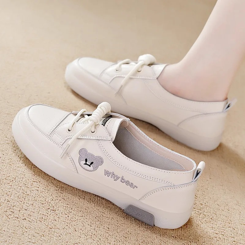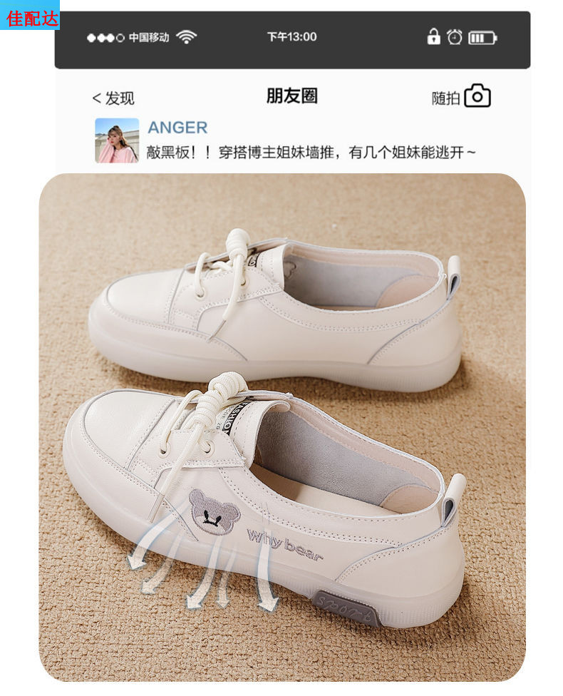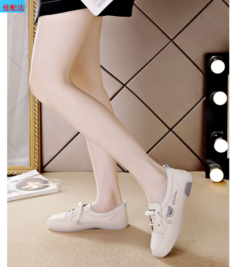 정품 가죽 흰색 신발 여성의 새로운 운동화 레드 그린 플라이 소프트 하단 쇠고기 텐든 올 매치 게으른 신발 슬립 온 캐주얼 스프링