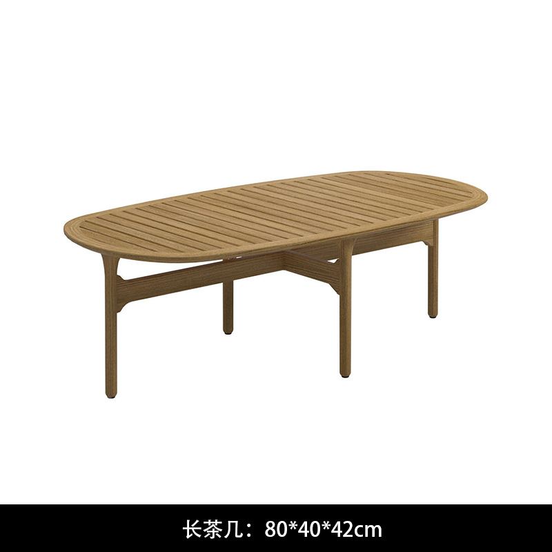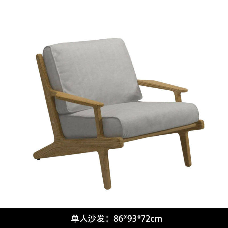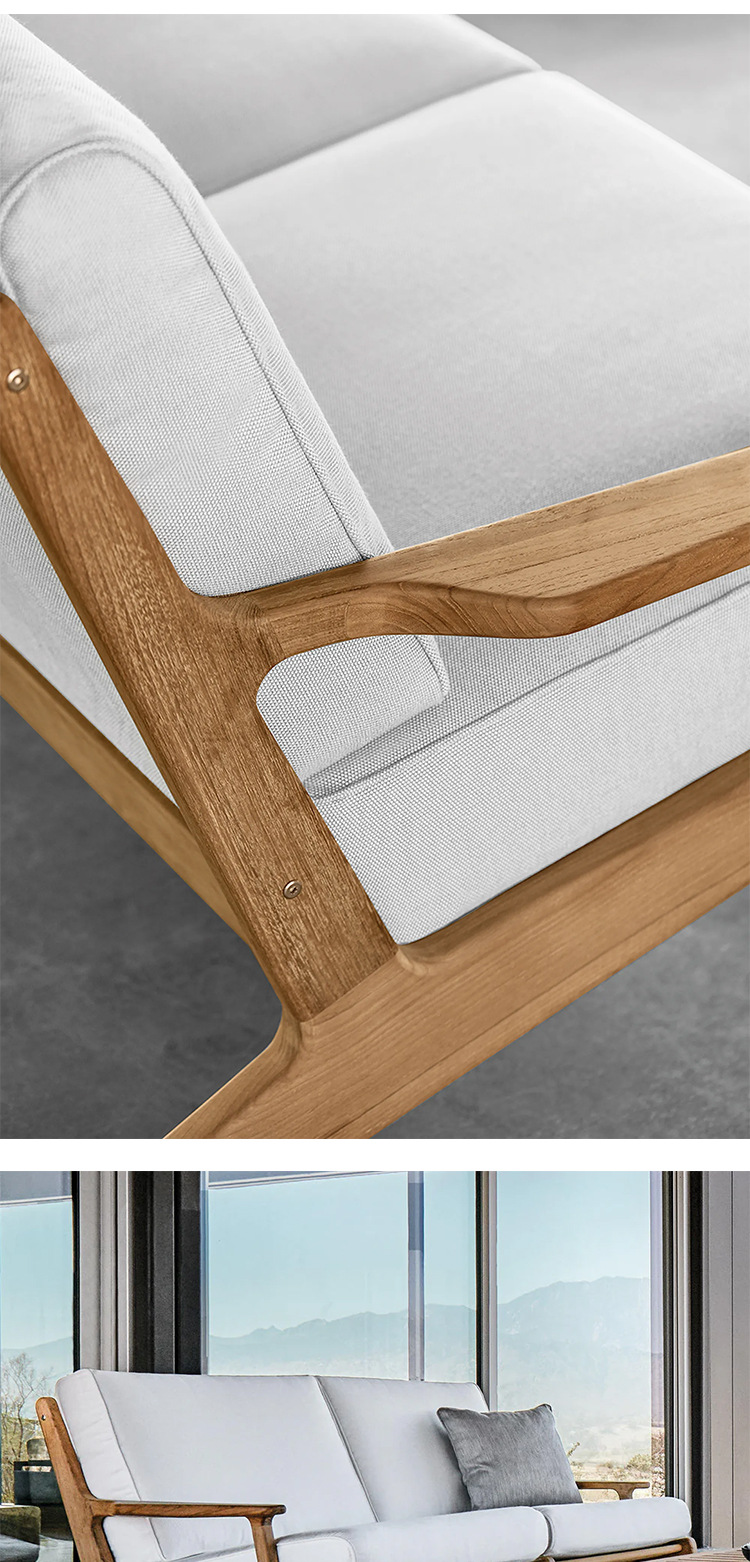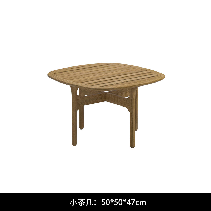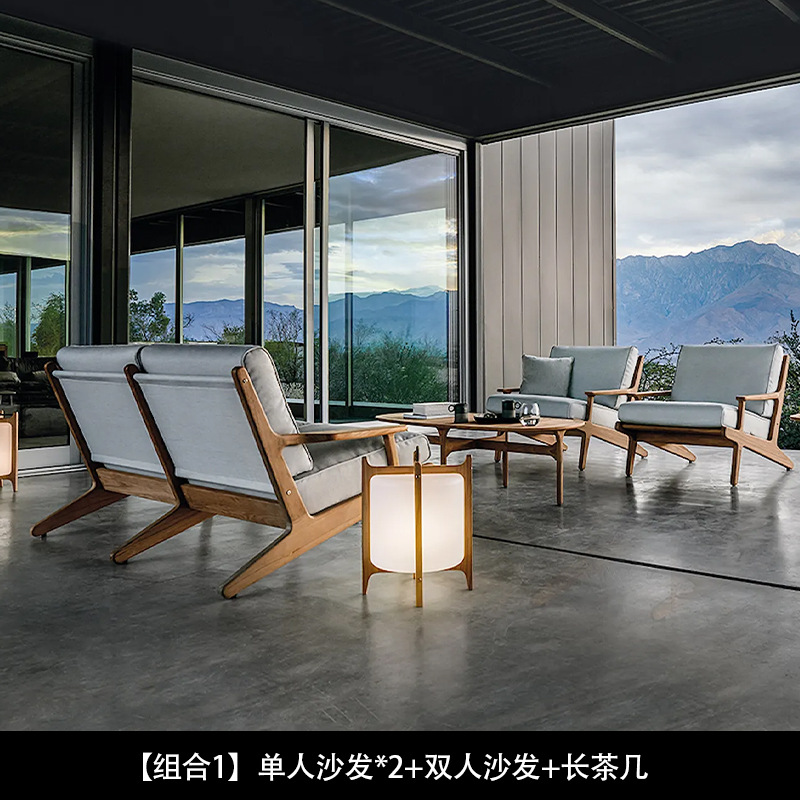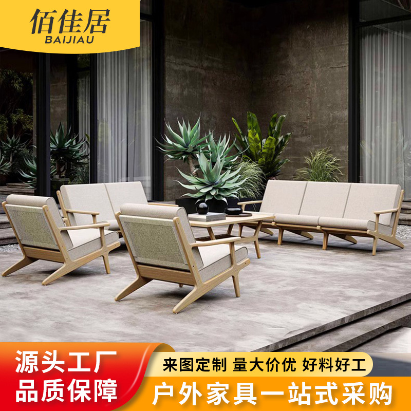 야외 소파 코트야드 티크 방수 천 소파 커피 테이블 조합 발코니 선 스크린 미니멀리스트 로그 바람 솔리드 우드 소파