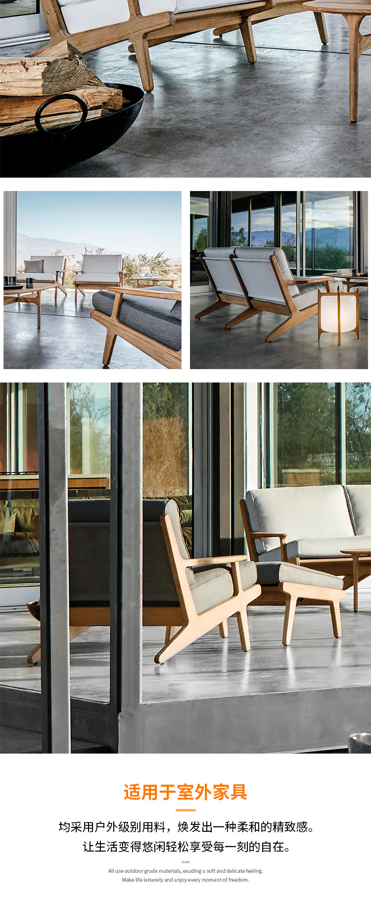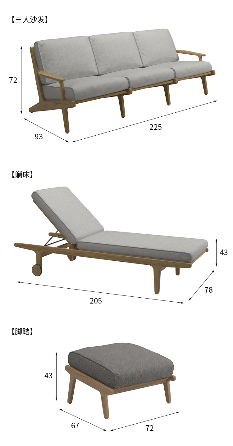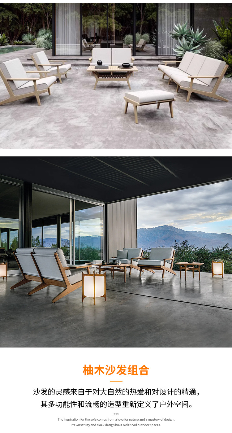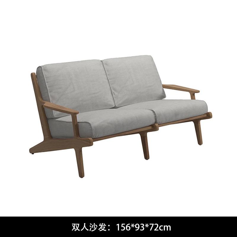 야외 소파 코트야드 티크 방수 천 소파 커피 테이블 조합 발코니 선 스크린 미니멀리스트 로그 바람 솔리드 우드 소파