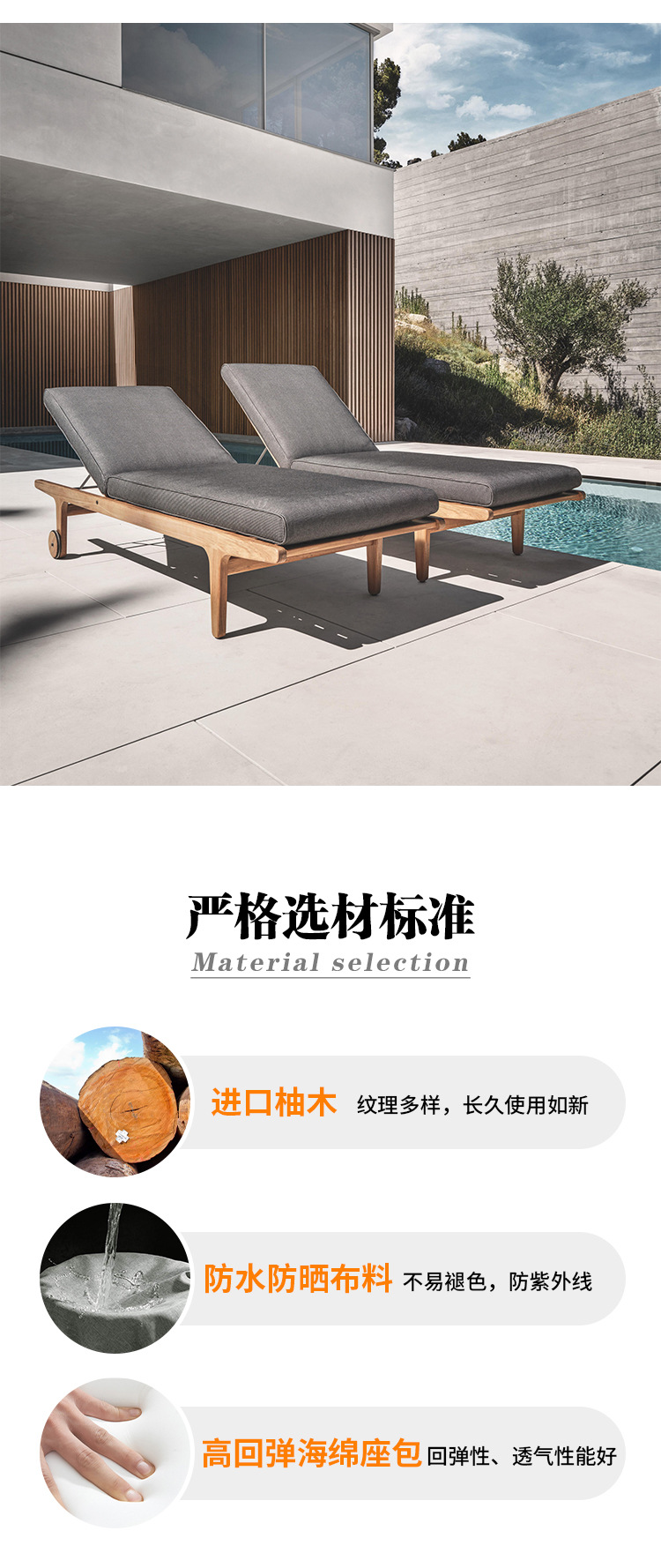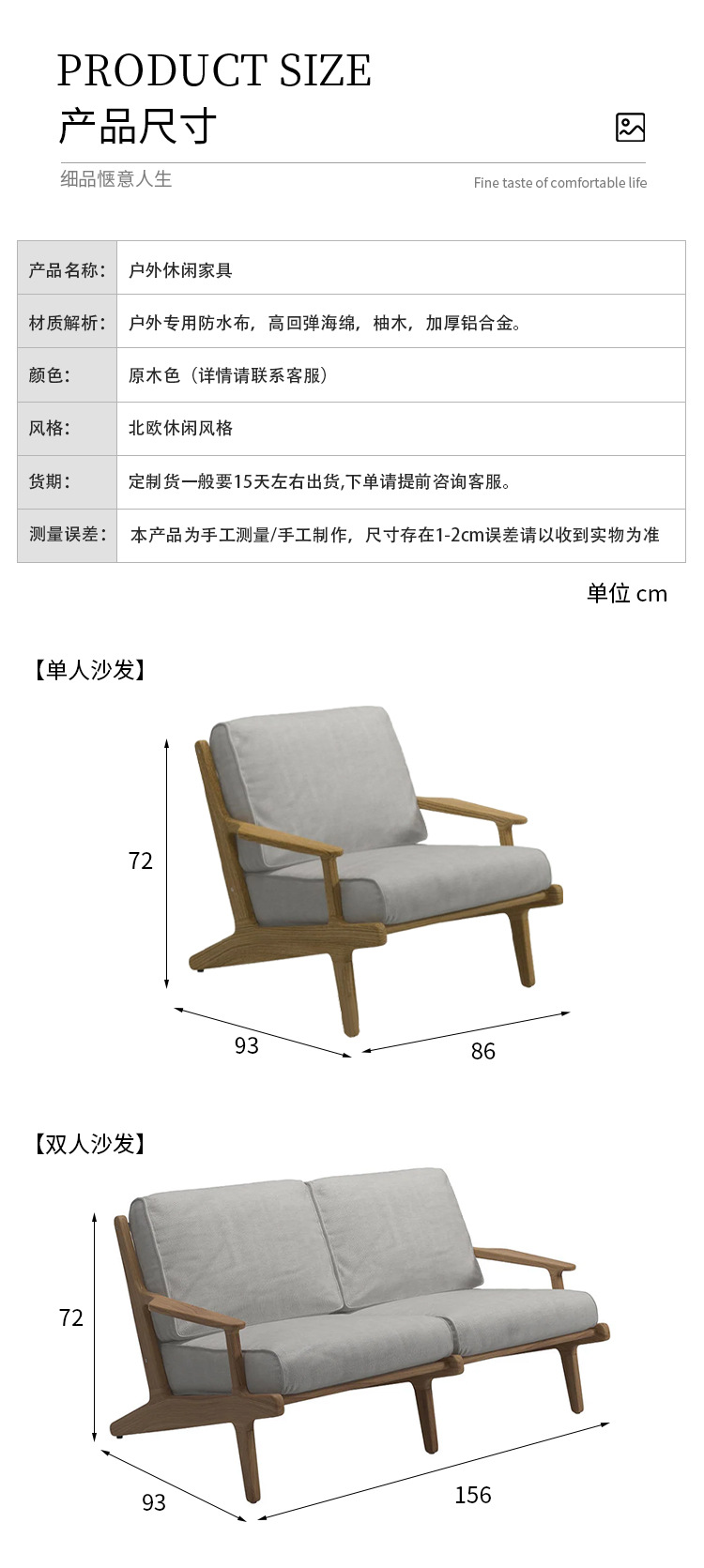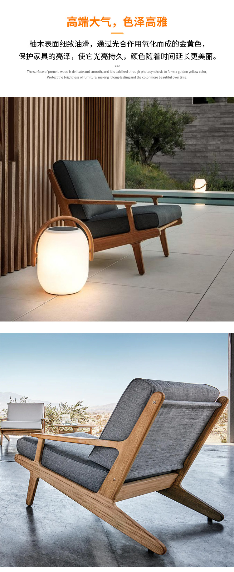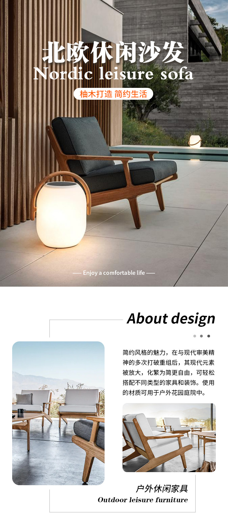 야외 소파 코트야드 티크 방수 천 소파 커피 테이블 조합 발코니 선 스크린 미니멀리스트 로그 바람 솔리드 우드 소파