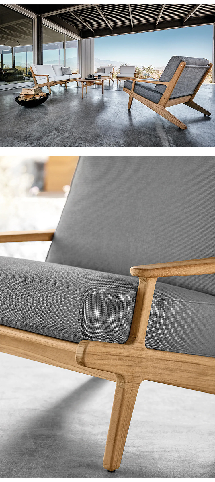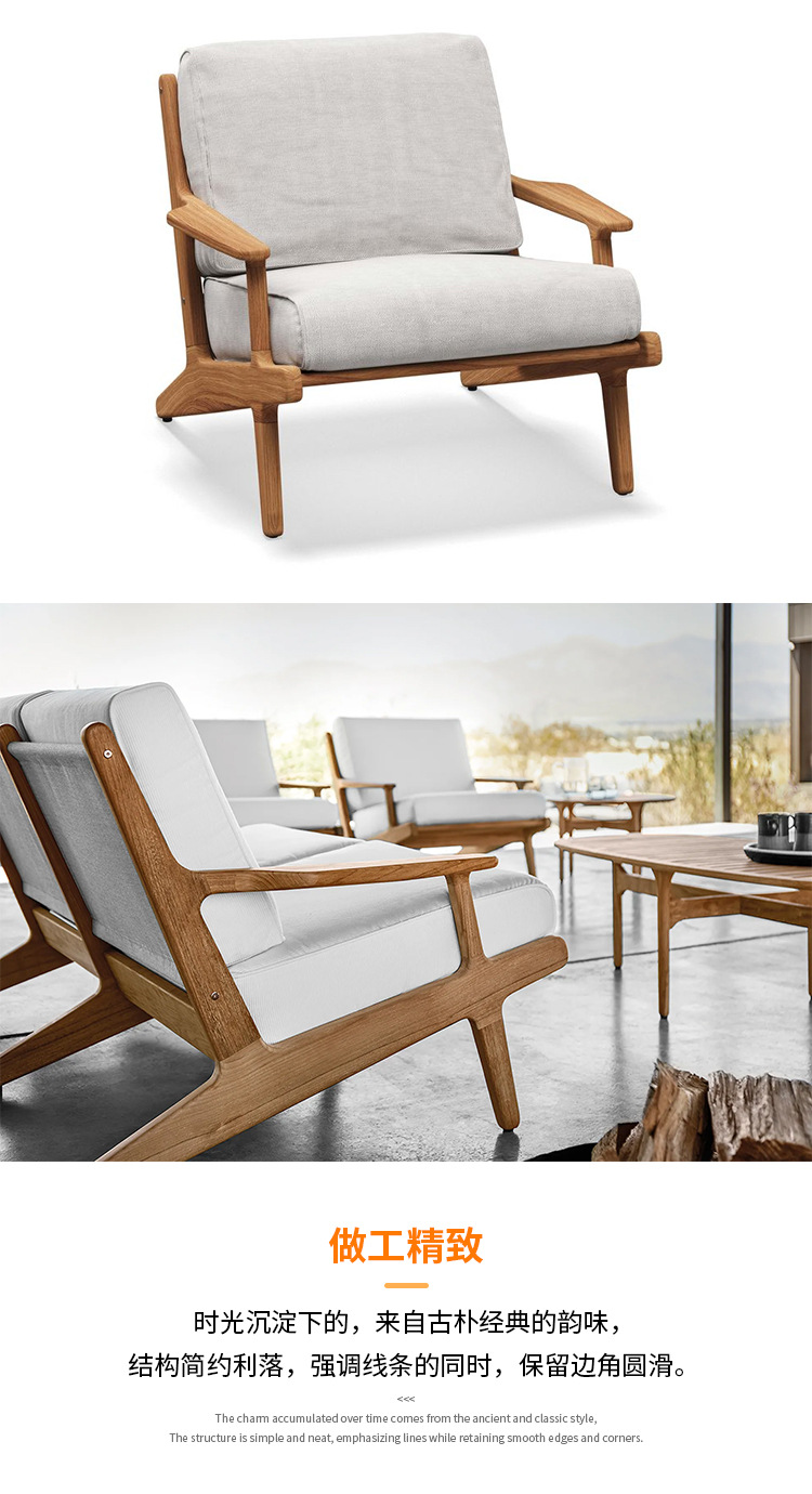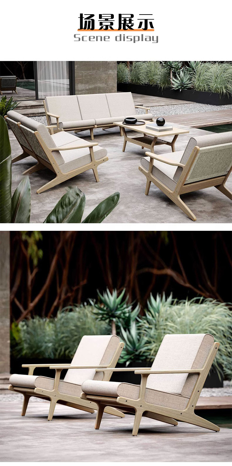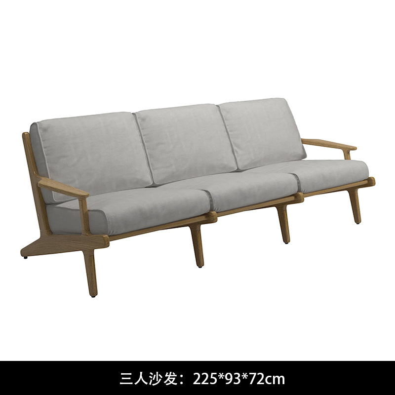 야외 소파 코트야드 티크 방수 천 소파 커피 테이블 조합 발코니 선 스크린 미니멀리스트 로그 바람 솔리드 우드 소파스토어 가기