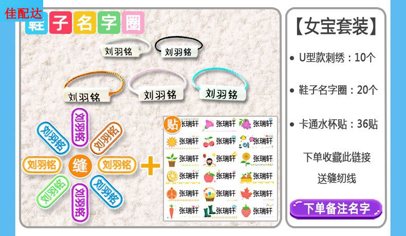 • 솔기 구멍 있음 [자수 10개 + 신발 고리 20개 + 방수 스티커 36개] 여성용 세트
