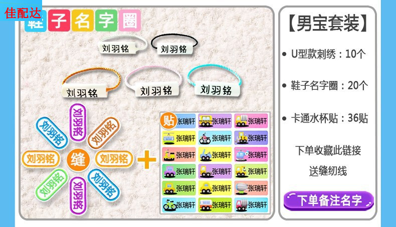 • 솔기 구멍 있음 [자수 10개 + 신발 고리 20개 + 방수 스티커 36개] 남성용 세트