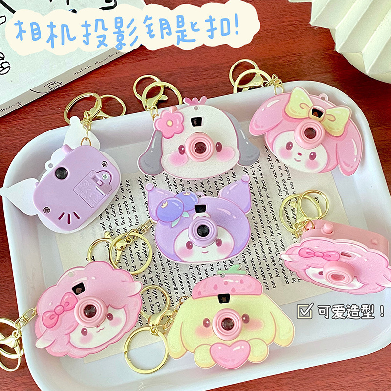 프로젝션 카메라 키체인 어린이 장난감 만화 야시장 야광 가판대 쿠로미 가방 장식품 귀여운