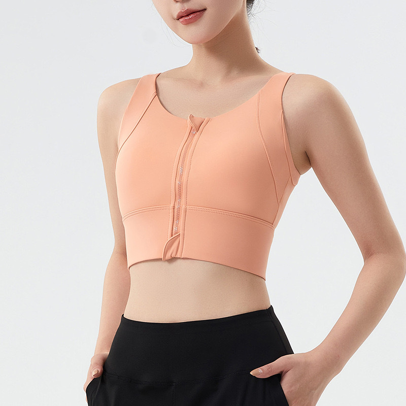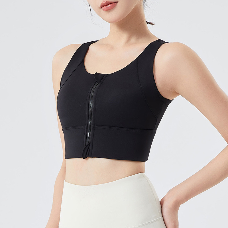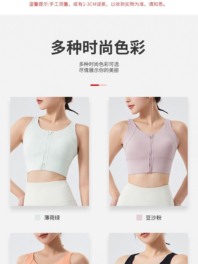 전면 지퍼 스포츠 속옷 플러스 사이즈 충격 방지 원피스 고정 컵 요가 조끼 푸시 업 담보 피트니스 브래지어