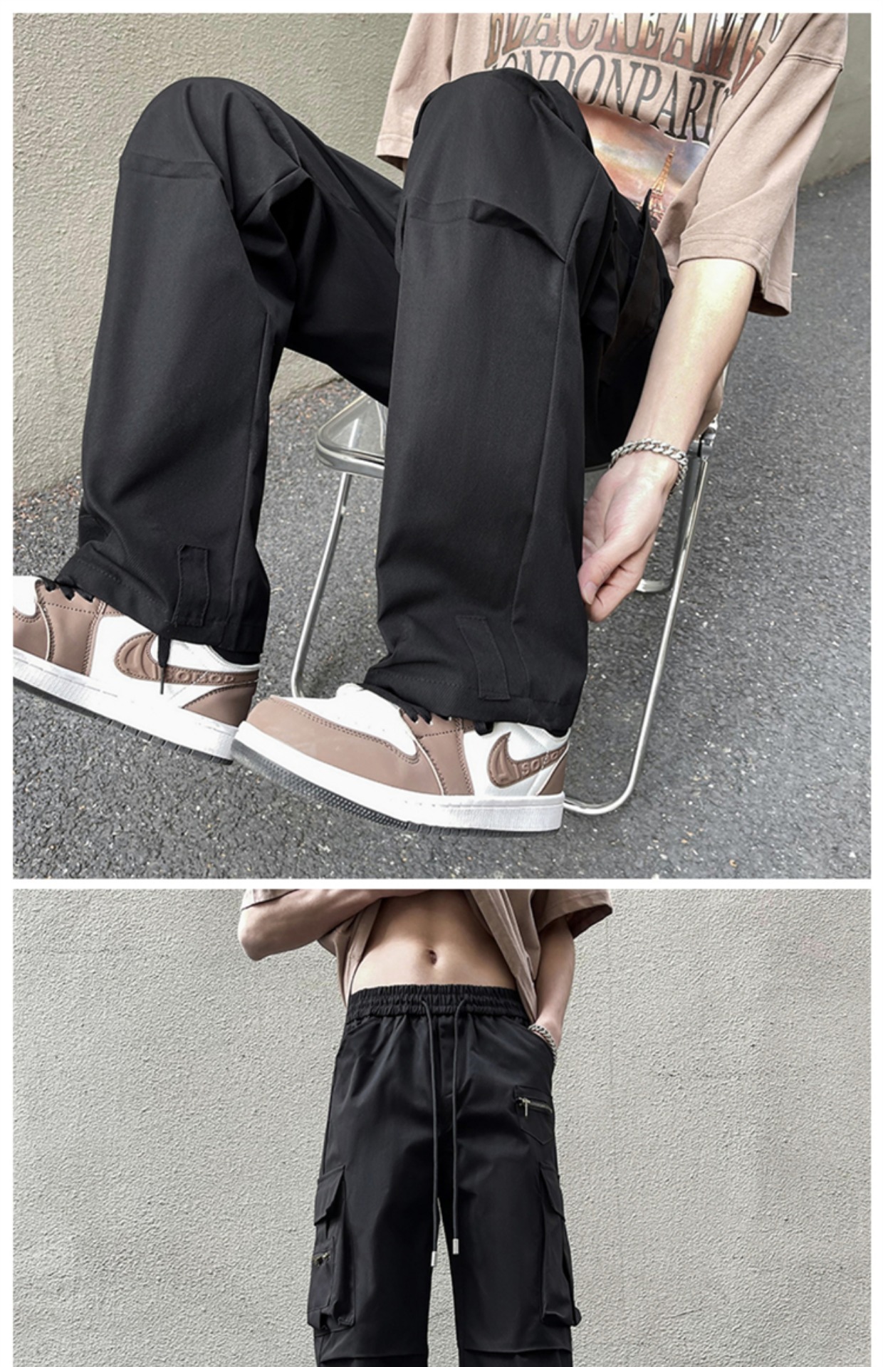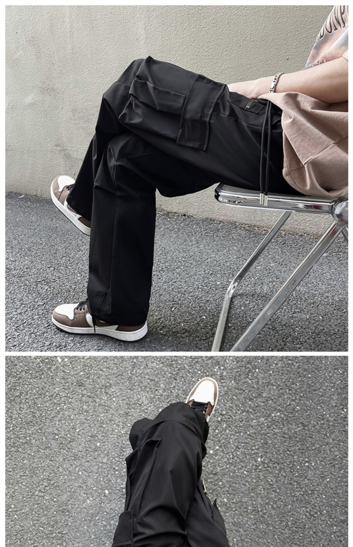남성용 봄과 가을 미국 기능성 오버볼 남성용 트렌디 브랜드 하이 스트리트 디자인 센스 루즈 스트레이트 바지 남성용 바지 남성복