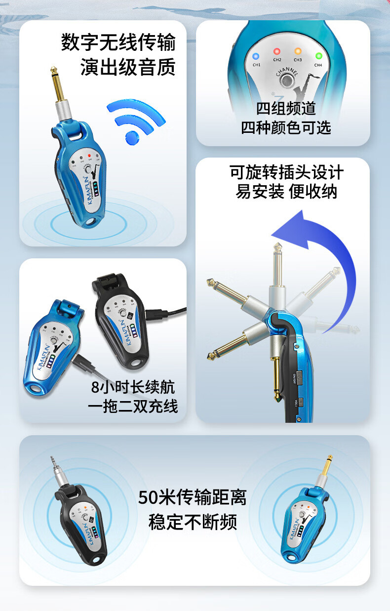 Jingmaifeng G207 전기 블로우 파이프 무선 트랜시버 성능 송신기 수신기 전기 기타 전문 픽업 증폭기스토어 가기