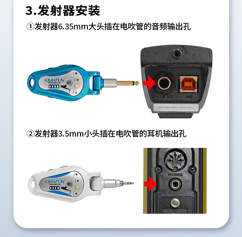 Jingmaifeng G207 전기 블로우 파이프 무선 트랜시버 성능 송신기 수신기 전기 기타 전문 픽업 증폭기