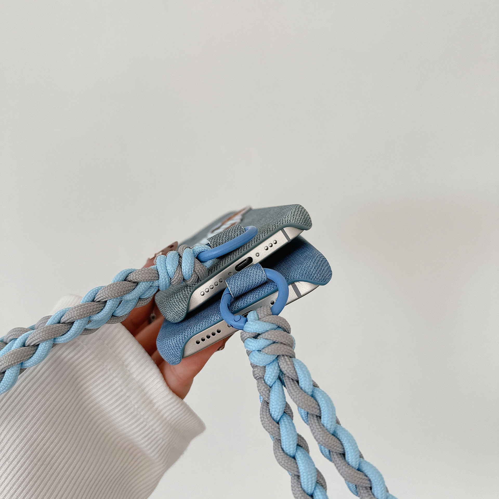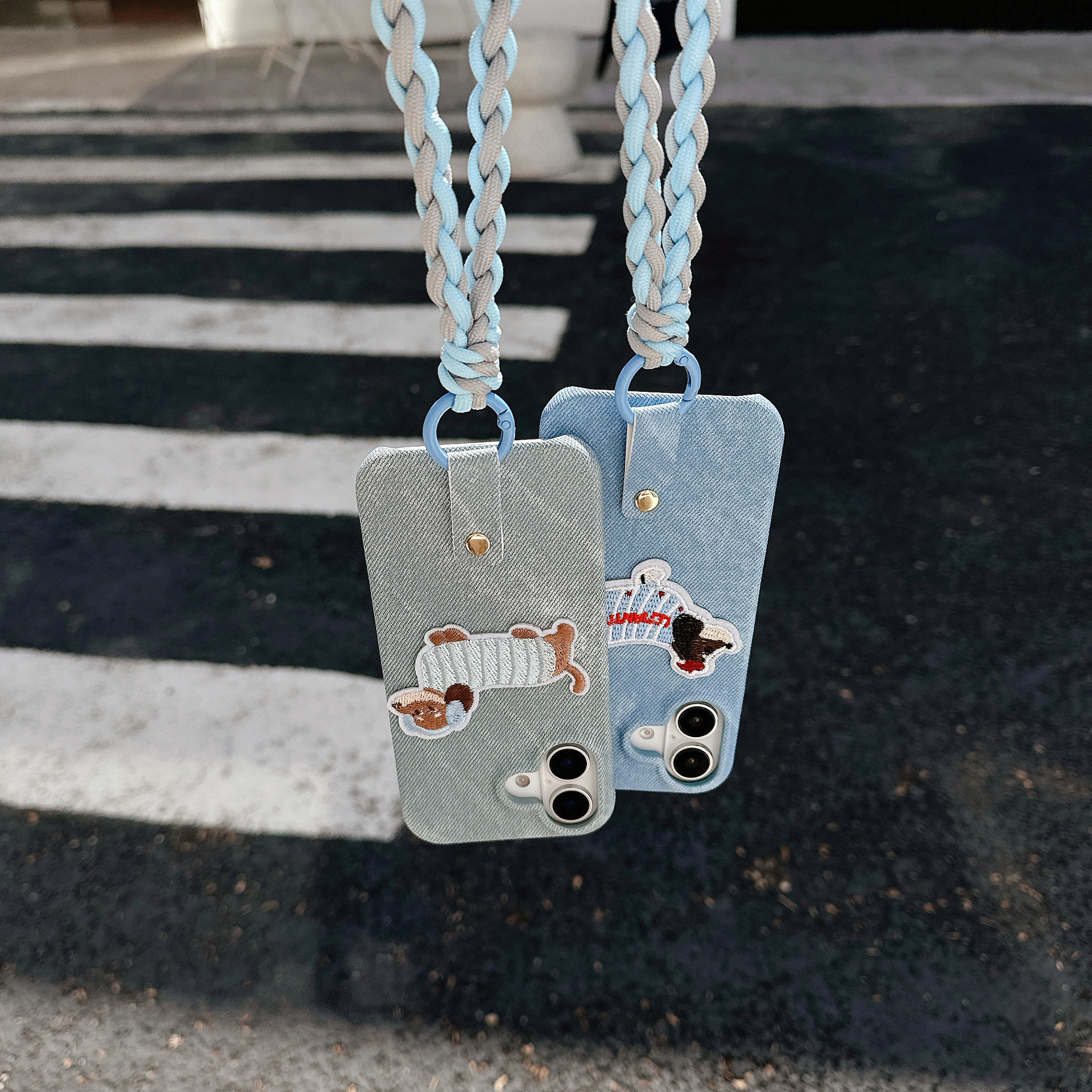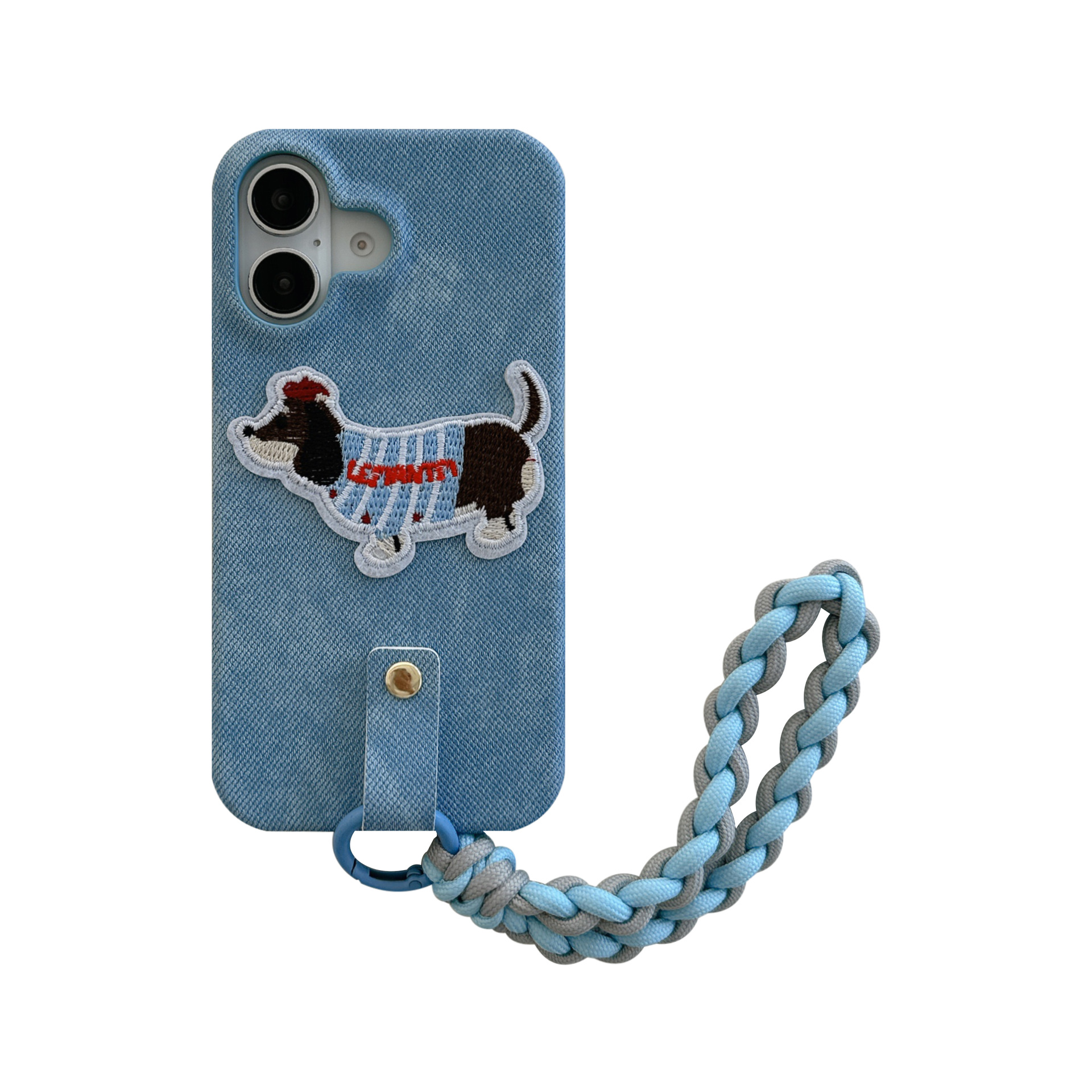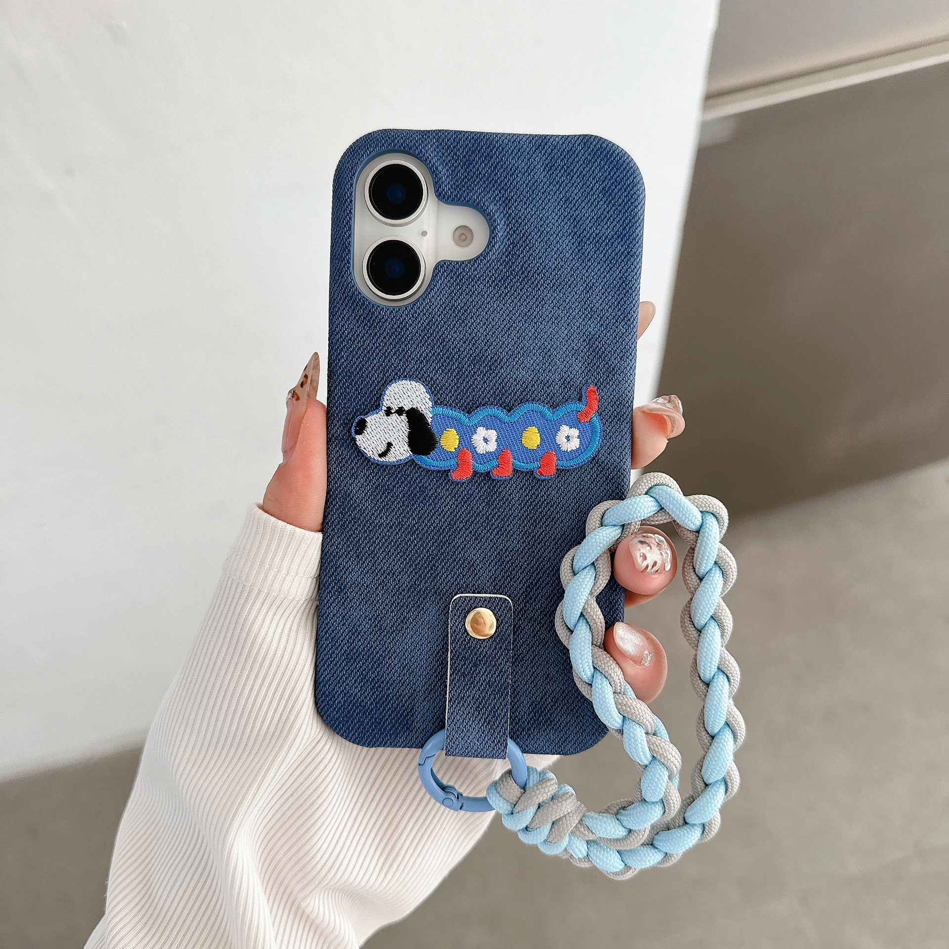 iPhone15 강아지 자수는 Apple 16 휴대폰 케이스, 삼성 S25U 우븐 팔찌 S24 데님 17p에 적합합니다.