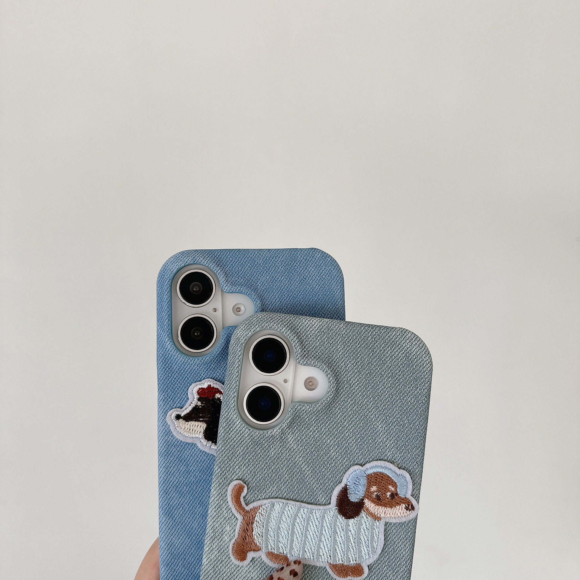 iPhone15 강아지 자수는 Apple 16 휴대폰 케이스, 삼성 S25U 우븐 팔찌 S24 데님 17p에 적합합니다.스토어 가기