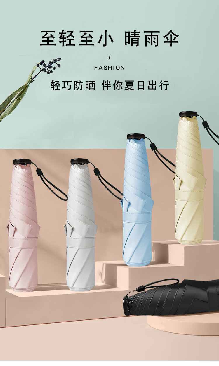 6 뼈 경량 깃털 우산 블랙 접착제 선스크린과 양산 접는 소녀의 휴대용 연필 우산 선물 광고 우산 인쇄 광고