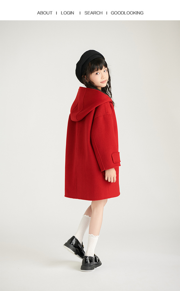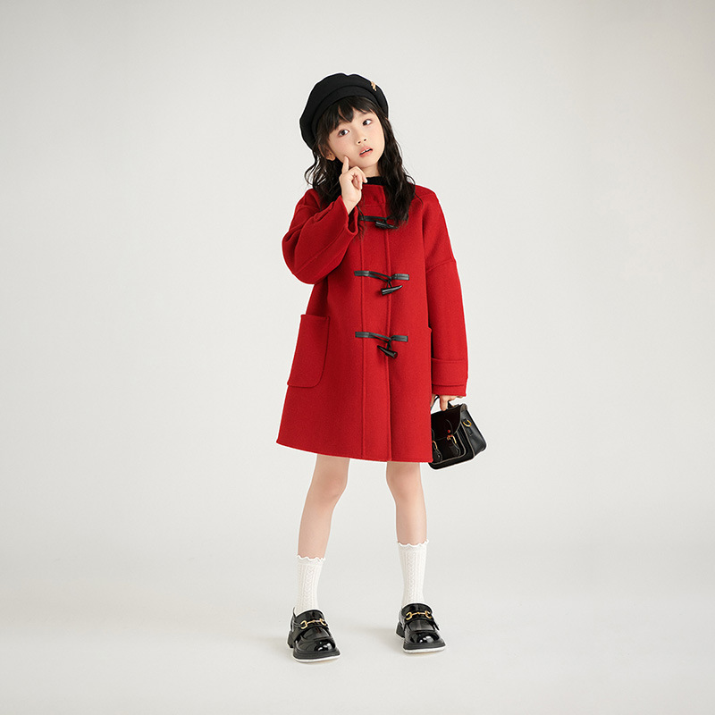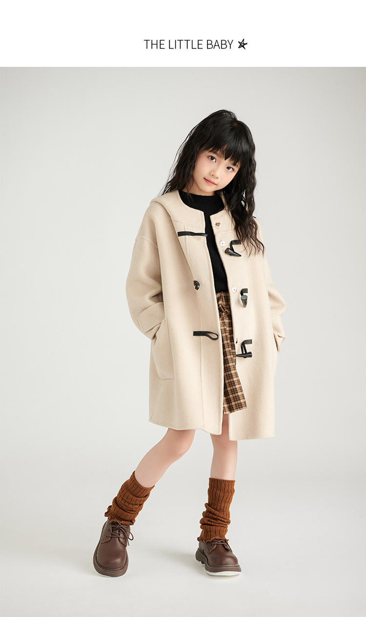 어린이 모직 코트 2024 가을과 겨울 새 소년들과 소녀들 양면 캐시미어 코트 중간 길이 두껍게스토어 가기
