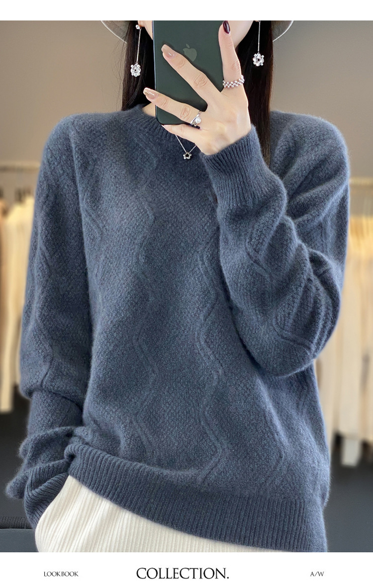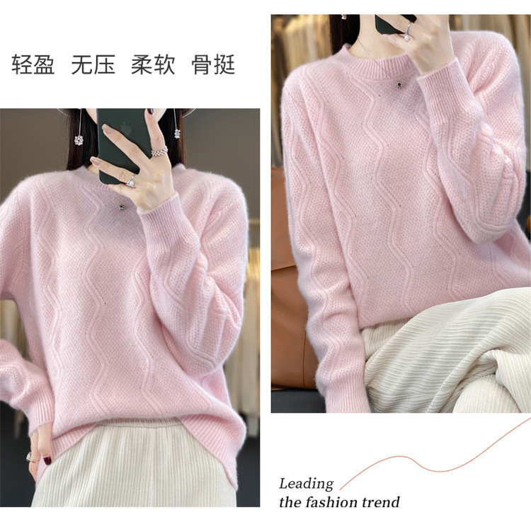 여자 반 높이 목 더블 골판지 니트웨어 솔리드 컬러 풀오버 스웨터 가을과 겨울 두꺼운 루즈베이스 셔츠