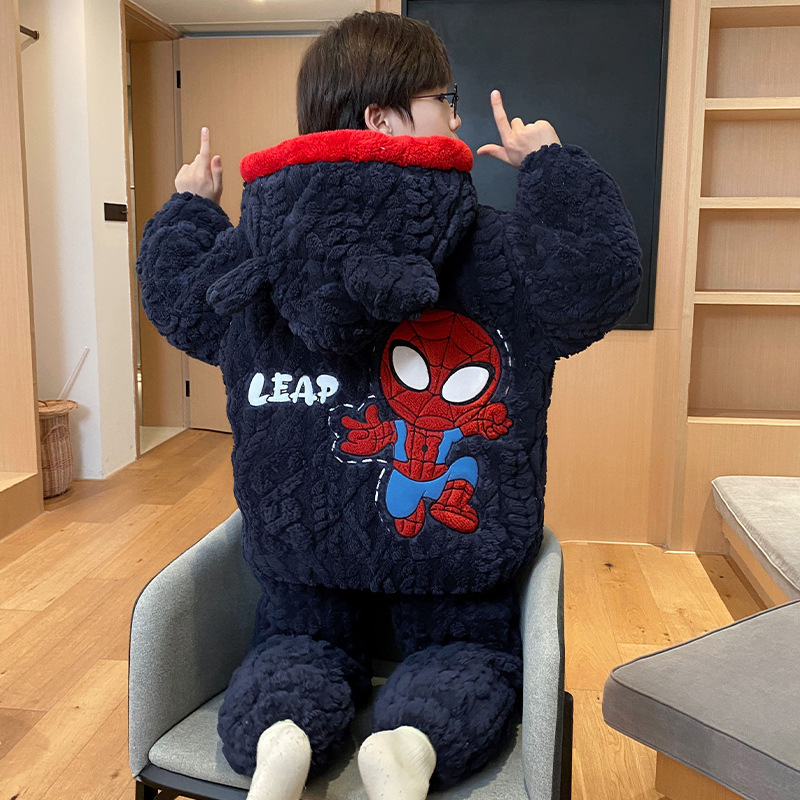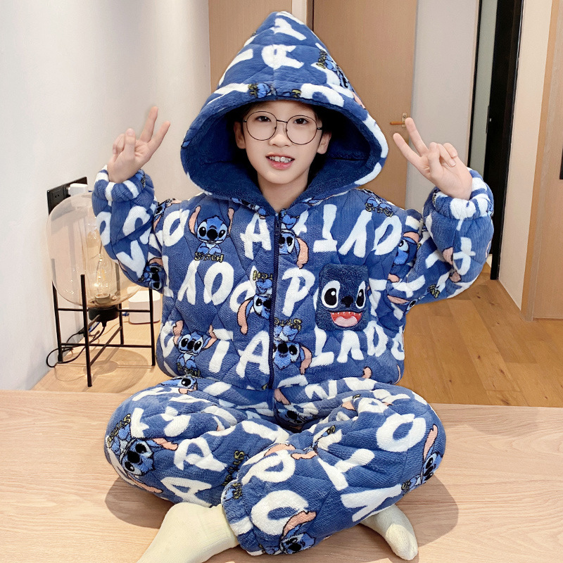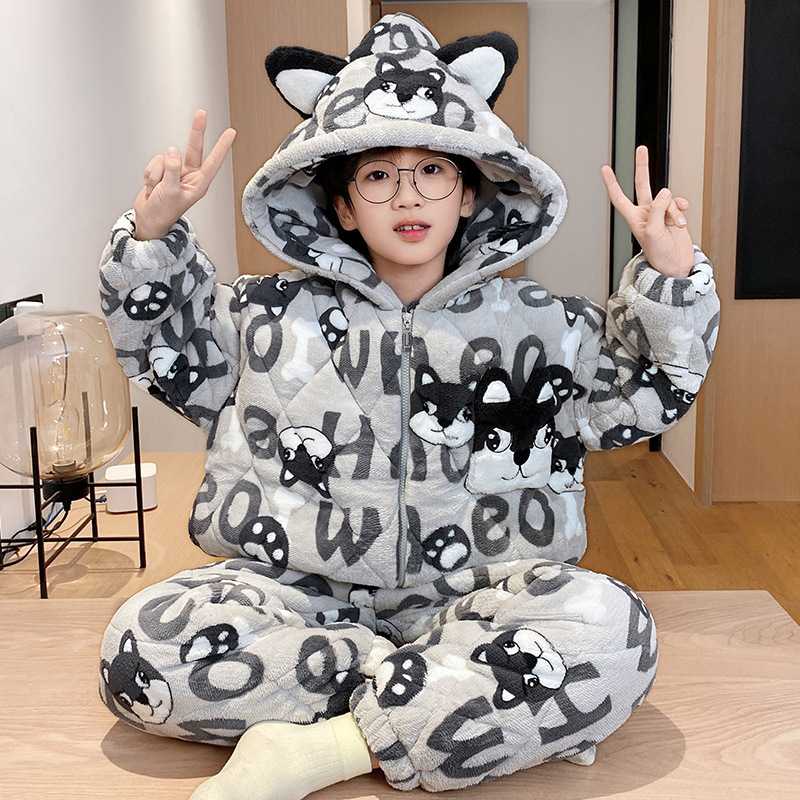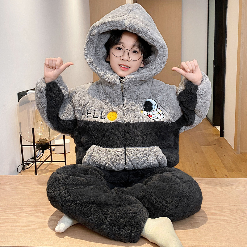 소년의 잠옷 겨울 3 층 면 두꺼운 산호 양털 어린이 빅 보이 플란넬 홈 옷 겨울스토어 가기