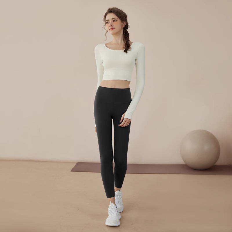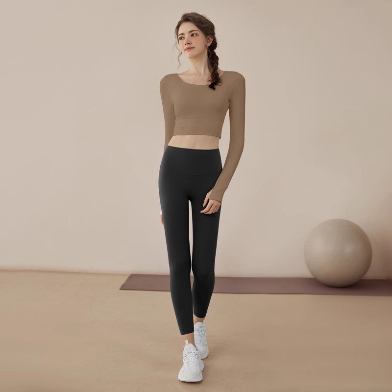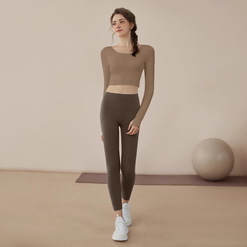 여성용 요가복 2025 신상 피트니스 스포츠 요가 탑 전문 필라테스 단색 긴팔 세트 도매스토어 가기