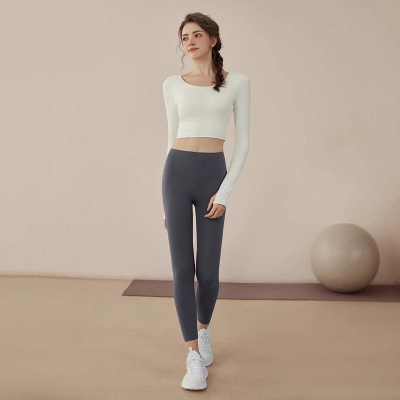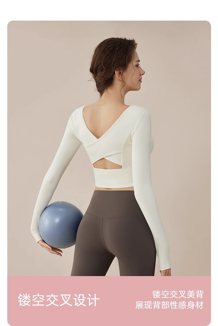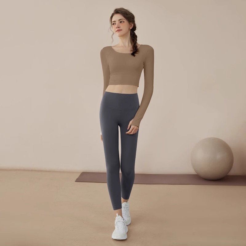 여성용 요가복 2025 신상 피트니스 스포츠 요가 탑 전문 필라테스 단색 긴팔 세트 도매